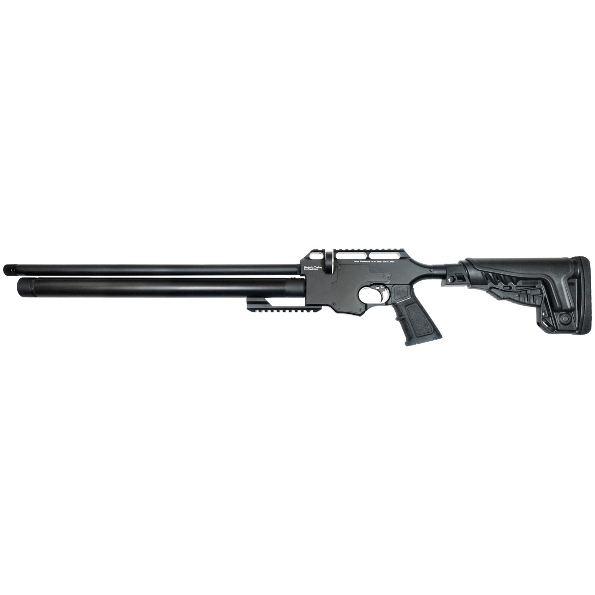 Reximex Force1, nowoczesna wiatrówka PCP w praktycznej osadzie taktycznej z chwytem pistoletowym i w pełni regulowaną kolbą. Dzięki teleskopowej kolbie, regulowanej stopce oraz bace policzkowej można karabin w pełni dostosować do swoich preferencji. Force1 wyposażono w dźwignię przeładowania Side Lever, podwójną szynę na optykę 11 i 22 mm, język spustowy o regulowanej twardości. Dostępny w kalibrach: .177 (4.5 mm), .22 (5.5 mm), .25 (6.35 mm).