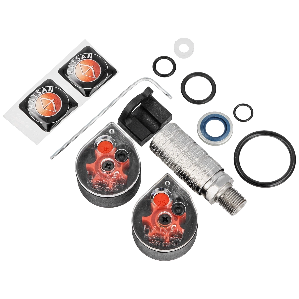 Lufa - o długości 11.8" (300 mm). Precyzyjnie gwintowana wykonana z niemieckiej stali, pokrytej polimerową osłoną, który chroni i stabilizuje oraz zapewnia dokładność. Lufę QE (QuietEnergy) zakończono integralnym tłumikiem wewnętrznym, redukującym o -50% odgłos wystrzału. Zwężona u wylotu lufy (czokowana) zapewnia precyzyjne prowadzenie pocisku, poprawia celność. Konstruktorzy firmy Hatsan zadbali o poprawienie celności karabinka zakończając lufę polimerową osłoną tzw. muzzle break ułatwiającą naciąg wiatrówki, która dodatkowo poprawiła wyważenie wiatrówki. Jakość wykonania luf ma ogromny wpływ na celność zwłaszcza przy strzelaniu na długich dystansach, jest jednym z najważniejszych elementów każdej broni.