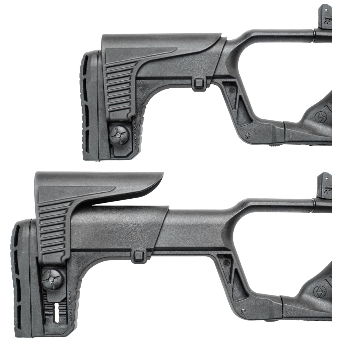 Teleskopowa taktyczna kolba TTS (Tactical Telescopic Stock) z możliwością regulacji długości kolby, wysokości baki policzkowej oraz gumowej stopki. Dzięki pełnej regulacji proces skonfigurowania wiatrówki zgodnie z własnymi preferencjami jak i stylem strzelania jest szybki i nieskomplikowany. Kolbę przystosowaną dla osób prawo i leworęcznych, zakończono gumową wentylowaną stopką absorbującą energię odrzutu po oddanym strzale. Po wypięciu kolby istnieje możliwość korzystania wyłącznie z chwytu pistoletowego.