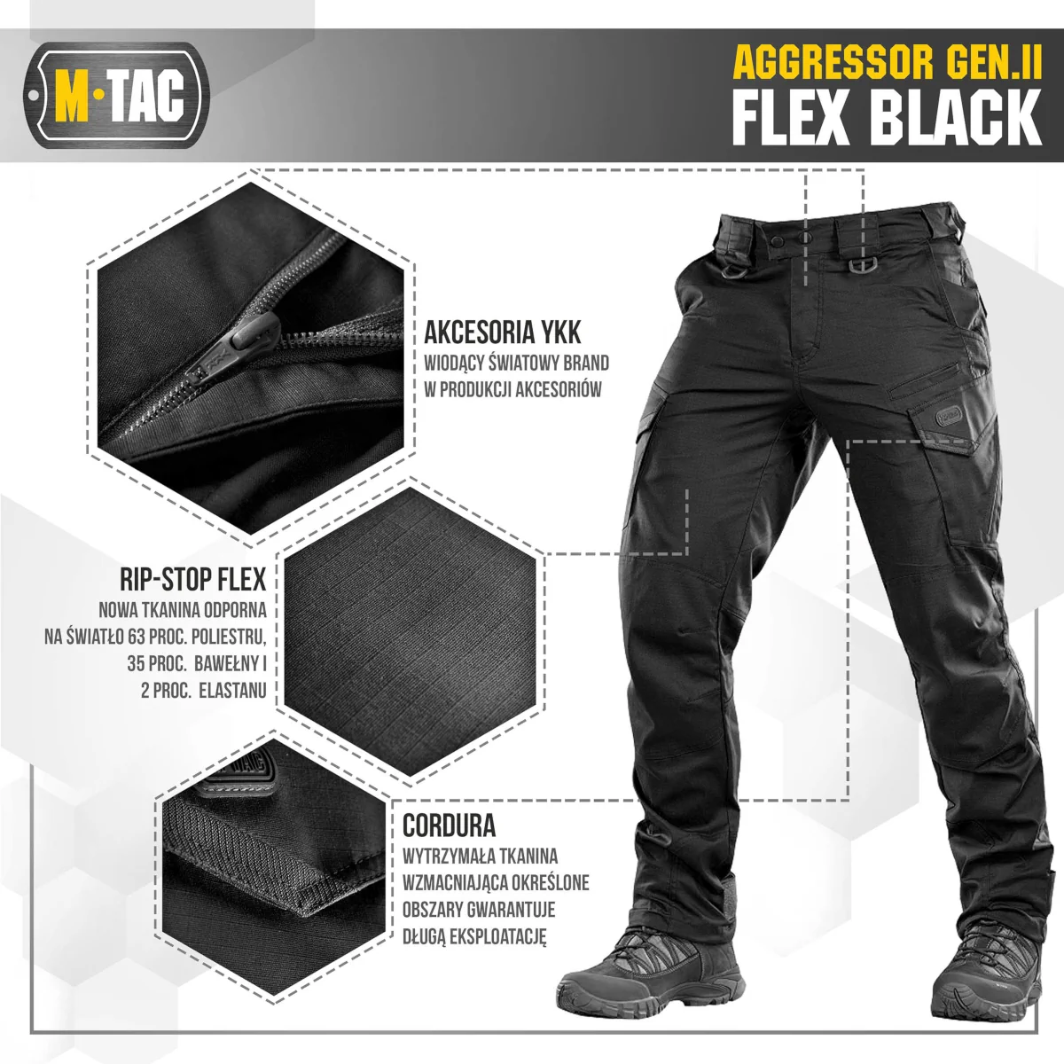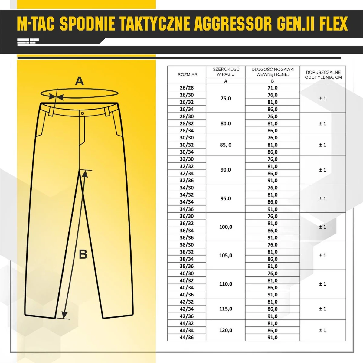 - Spodnie taktyczne Aggressor Gen. II Flex to wygodne i wytrzymałe spodnie wykonane z wysokiej jakości materiałów. Doskonale sprawdzą się zarówno w warunkach miejskich, jak i podczas aktywności na świeżym powietrzu.