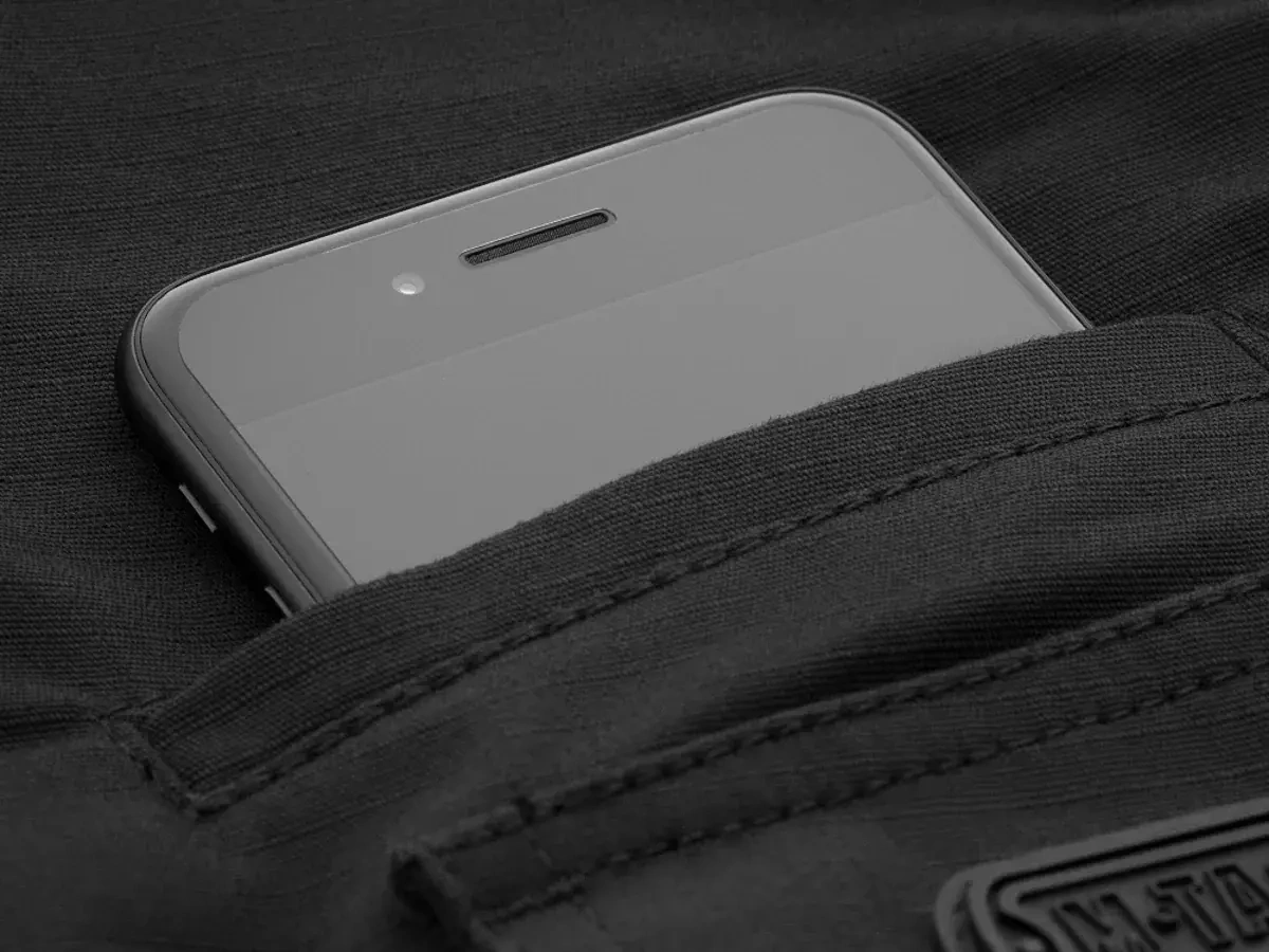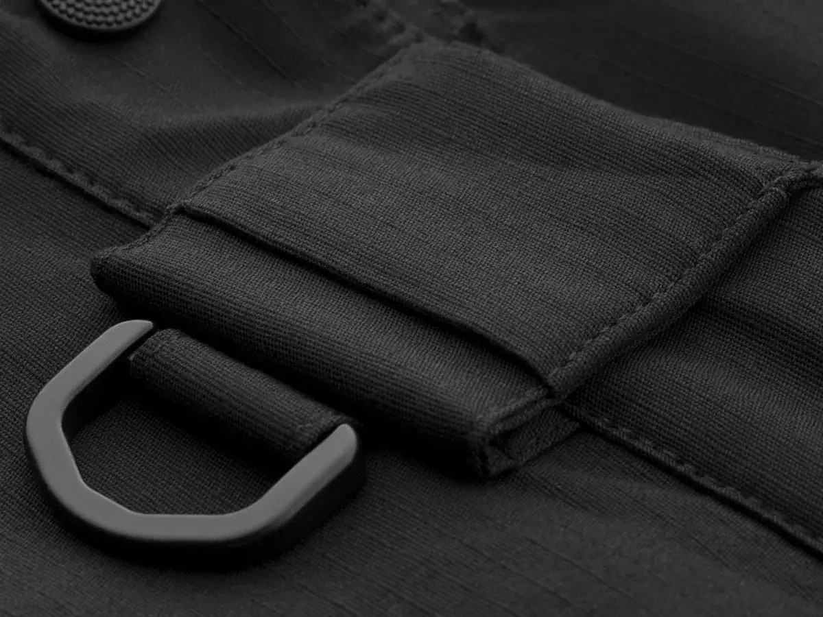 W spodniach zamiast guzika zastosowano metalowy haczyk oraz zatrzask. W pas wszyta została elastyczna taśma poprawiająca dopasowanie spodni do indywidualnych cech sylwetki. Szlufki umożliwiają korzystanie z pasa o szerokości do 55 mm, a dwie przednie dodatkowo wyposażono w polimerowe pętle (d-ringi) umożliwiające podczepienie np. rękawiczek lub kluczy. Nogawki zostały zakończone regulowanymi ściągaczami.