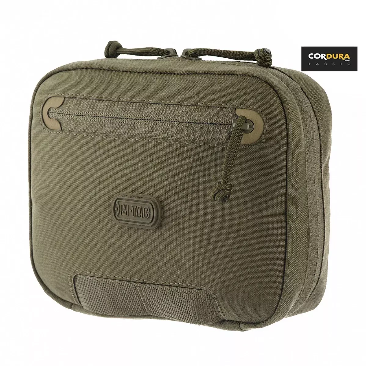 - Uniwersalny organizer firmy M-Tac wykonany z wytrzymałej Cordury 500D do przenoszenia zestawu EDC lub NAZ. Wyposażony w szybkie mocowanie na pasie lub pod taśmy systemu M.O.L.L.E. ułatwia utrzymanie porządku w plecaku lub torbie.