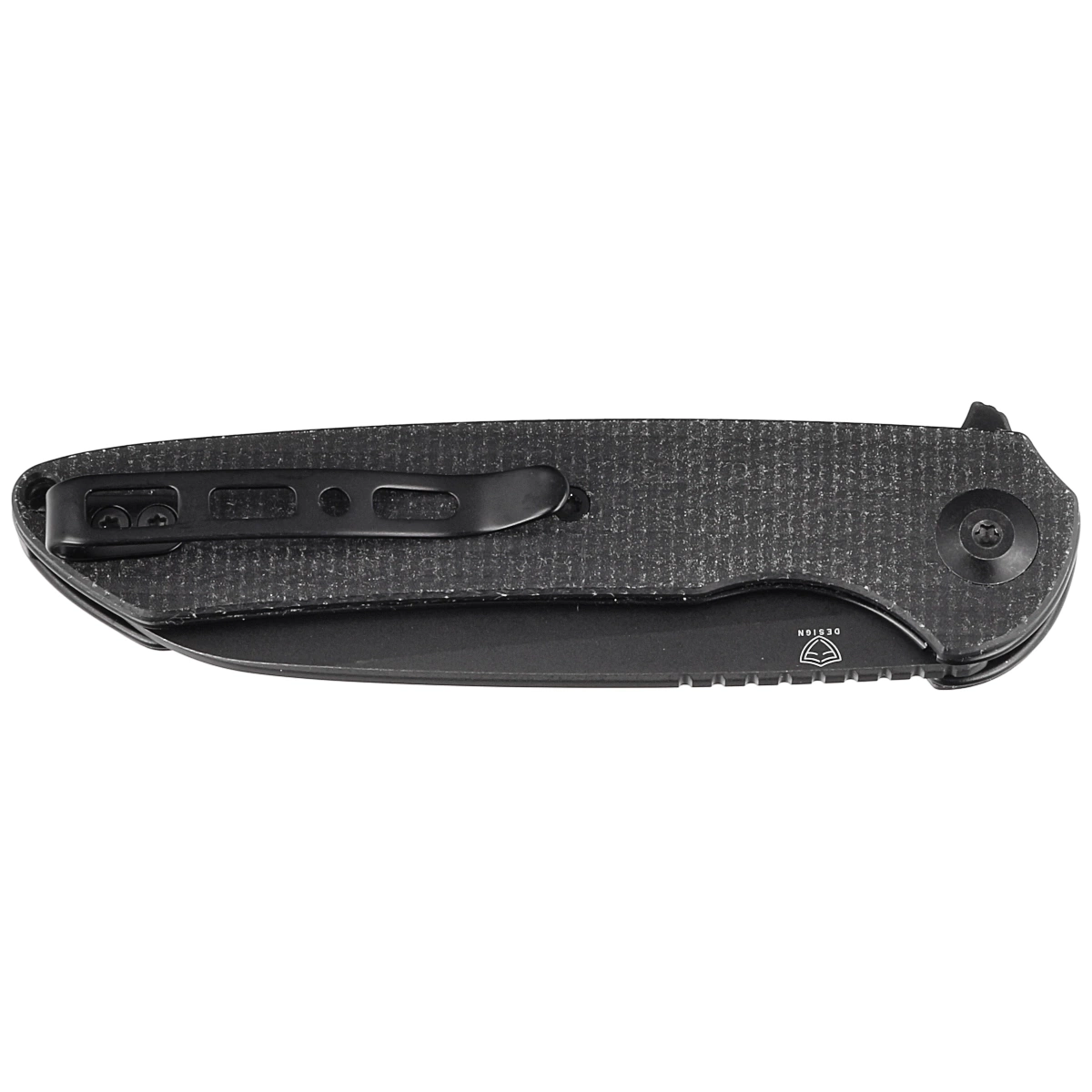 Rękojeść - w czarnym kolorze. Wykonana z Micarty, kompozytowego materiału z płótna prasowanego pod ciśnieniem z syntetyczną żywicą. Fazowane krawędzie okładek eliminują ostre krawędzie dla wygody, uchwytu. Backspacer wykonany z G10. Wykonane z przodu podcięcie na palec (fore finger groove) poprawia pewność uchwytu. Dwupozycyjny, prawo/lewostronny klips deep carry pozwala przenosić dyskretnie nóż w kieszeni w pozycji tip-up (czubkiem ostrza ku górze).