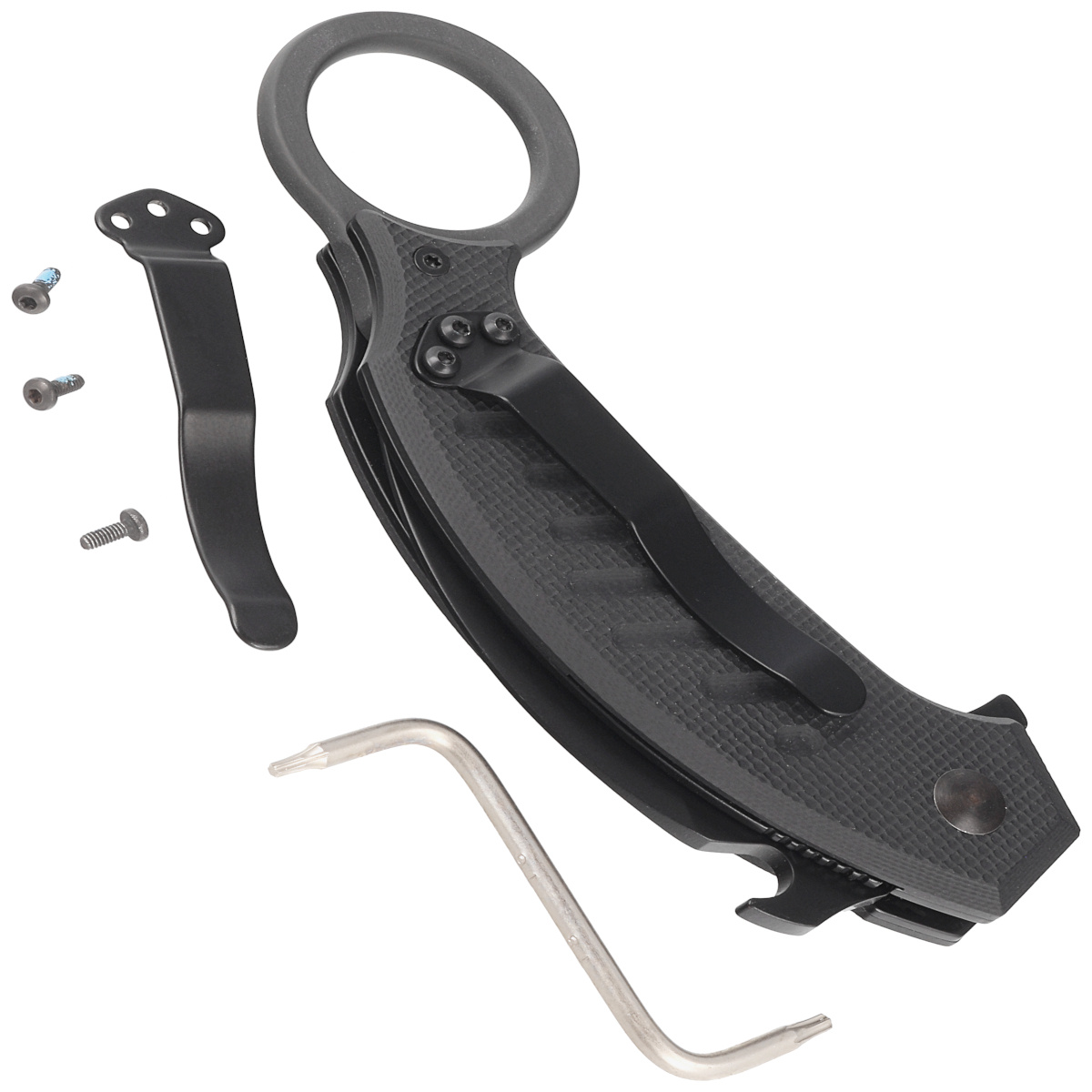 Karambit - rodzaj noża, który narodził się w Indonezji, korzeniami sięgając Malezji i Filipin. Charakteryzuje się pierścieniem na palec oraz sierpowatym kształtem ostrza, które cechuje ogromna skuteczność cięcia. Hawkbill naśladuje sposób rozszarpywania przez szpon orła lub pazur tygrysa, przebijanie oraz jednoczesne cięcie. Używany jako nóż roboczy oraz do obrony.