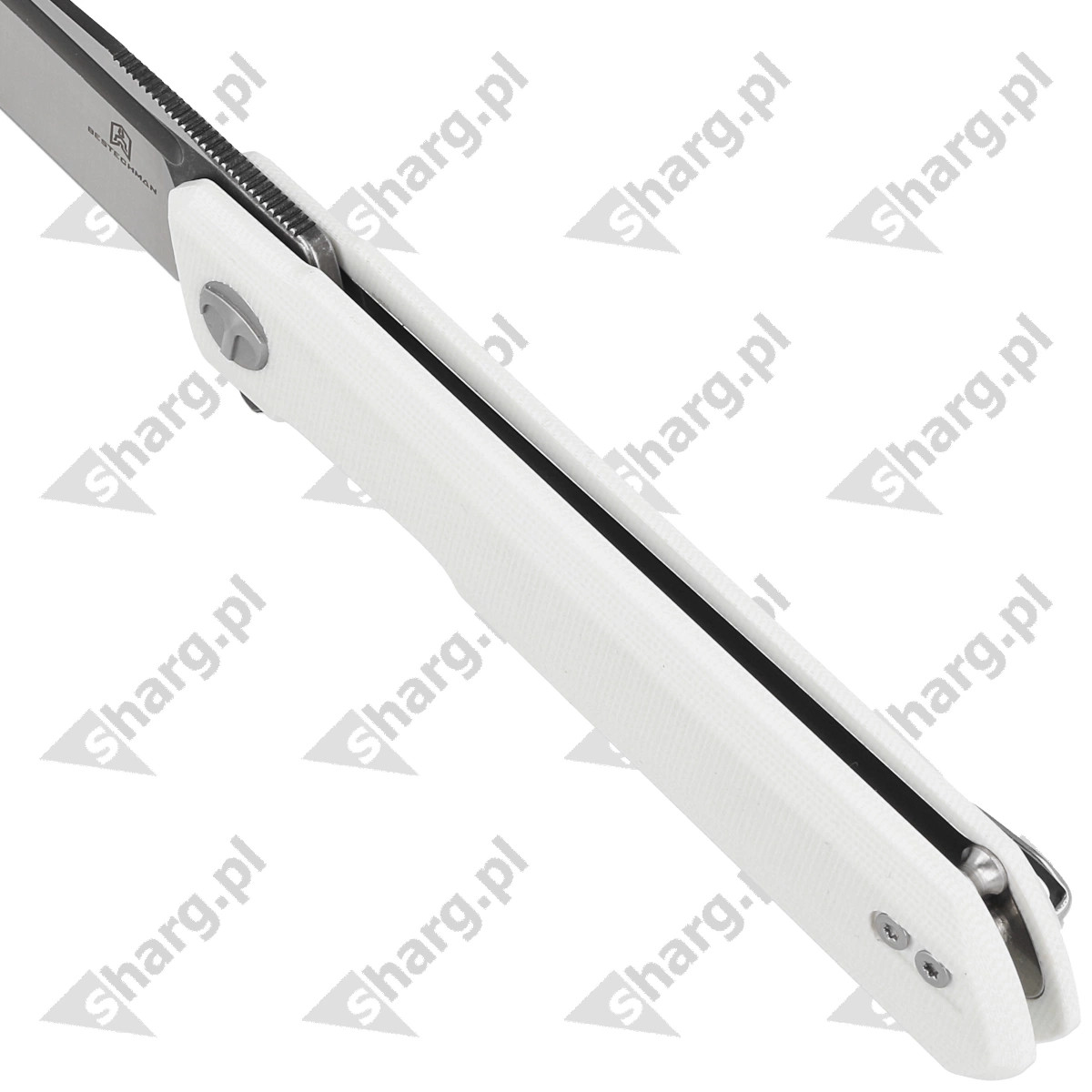 Dundee White G10, Grey Titanized / Satin kompaktowy nóż składany E.D.C. Efekt współpracy polskiego knifemakera, Ostapa Hela z firmą Bestechman. Wykonany z dobrych materiałów przy zachowaniu niezwykle atrakcyjnej ceny folder z klingą ze sprawdzonej stali D2. Bestseller!