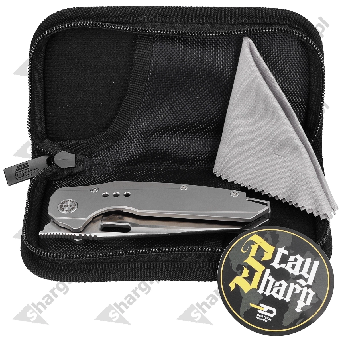 - Nyxie Gray Titanium, Stonewashed / Satin, jeden z flagowych noży firmy Bestech, zaprojektowanych przez Todd Knife and Tool. Niezwykle mocny, kompaktowy folder, który sprawdzi się zarówno w zastosowaniach EDC jak i cięższych pracach w terenie!
