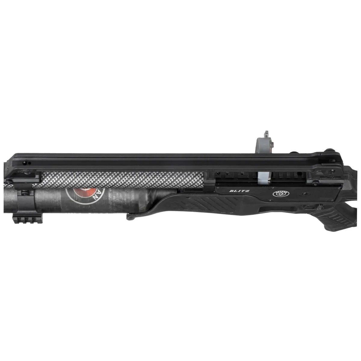 Blitz CB (Carbon Barrel) wielostrzałowa wiatrówka PCP firmy Hatsan Arms wyposażona w przełącznik rodzaju ognia (selektor ognia) Full / Semi. W pełni automatyczny FullAuto (ogień ciągły) oraz półautomatyczny SemiAutoAction (automatyczne przeładowanie). Blitz zapewnia automatyczne przeładowanie po każdorazowym naciśnięciu języka spustowego (tylko wersja FAC*) oraz szybkie oddawanie celnych strzałów na znaczne odległości bez potrzeby zmiany / korekty linii celowania. Dostępny w kalibrach: .177 (4.5 mm), .22 (5.5 mm), .25 (6.35 mm) oraz .30 (7.62 mm).