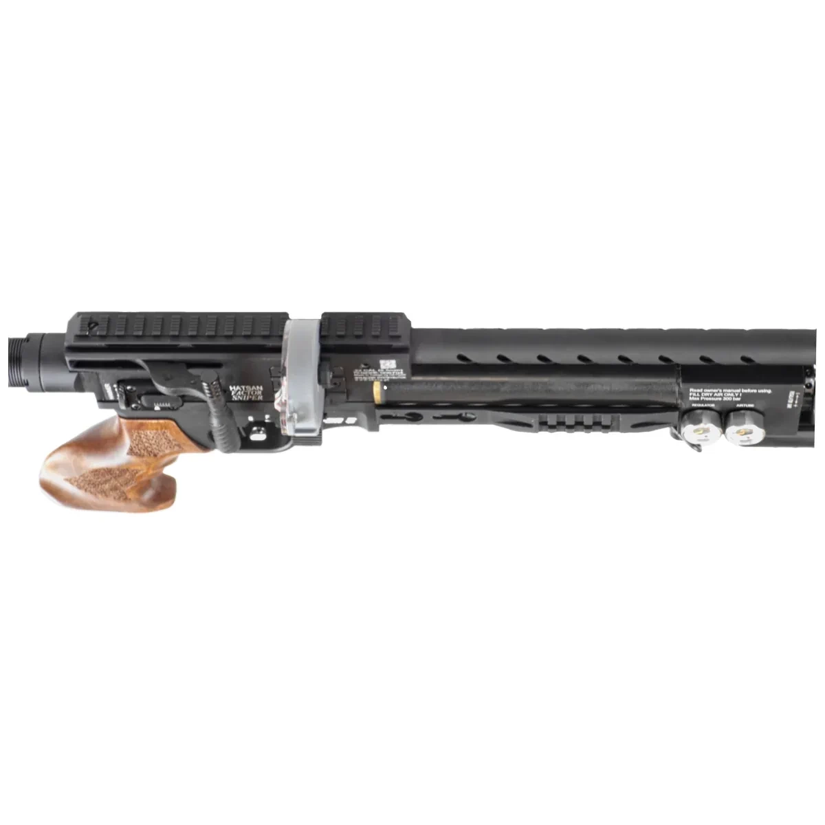 - Hatsan Factor Sniper S, nowoczesna taktyczna wiatrówka z regulowaną kolbą. Lekki carbonowy zbiornik 480cc, regulator ciśnienia, biathlonowa dźwignia Side Lever. Dostępna w kalibrach 4.5mm, 5.5mm, 6.35mm.