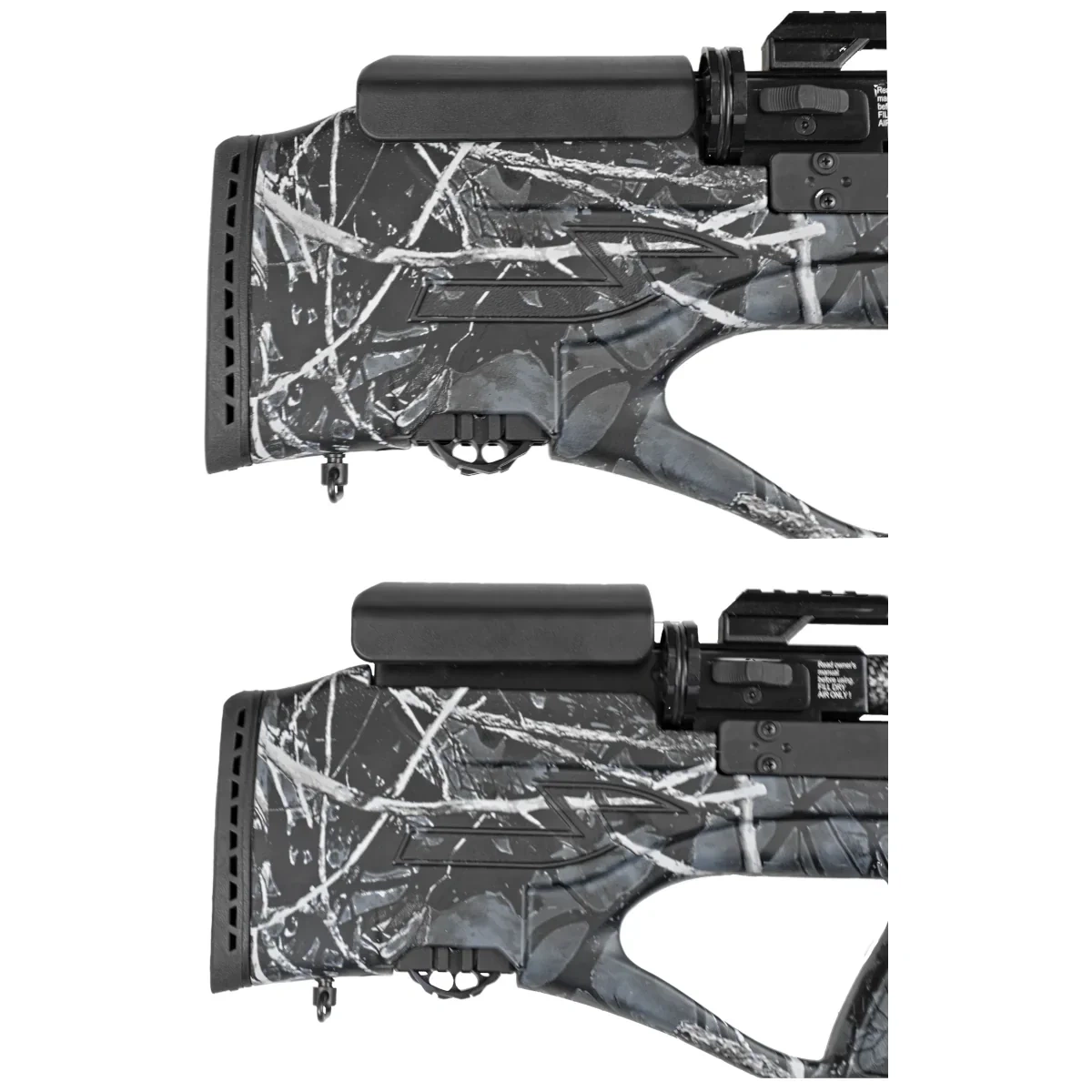 Wyposażenie dodatkowe - dwa metalowe obrotowe bączki do mocowania zawieszenia taktycznego. Końcówka Quick-Fill do szybkiego napełniania kartusza powietrzem za pomocą pompki butli technicznej / nurkowej (300 bar).