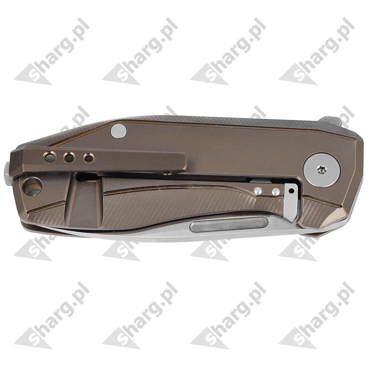- Nano Bronze Titanium, Satin zaawansowany nóż podręczny. Blokada frame lock, tytanowa rękojeść. Wyjątkowy nóż EDC ostrze stal MagnaCut, na spodzie głowni płetwa ReF, łożyska kulkowe Double Crown, tytanowy klips, klucz HY 68. Możesz go zawsze mieć ze sobą!