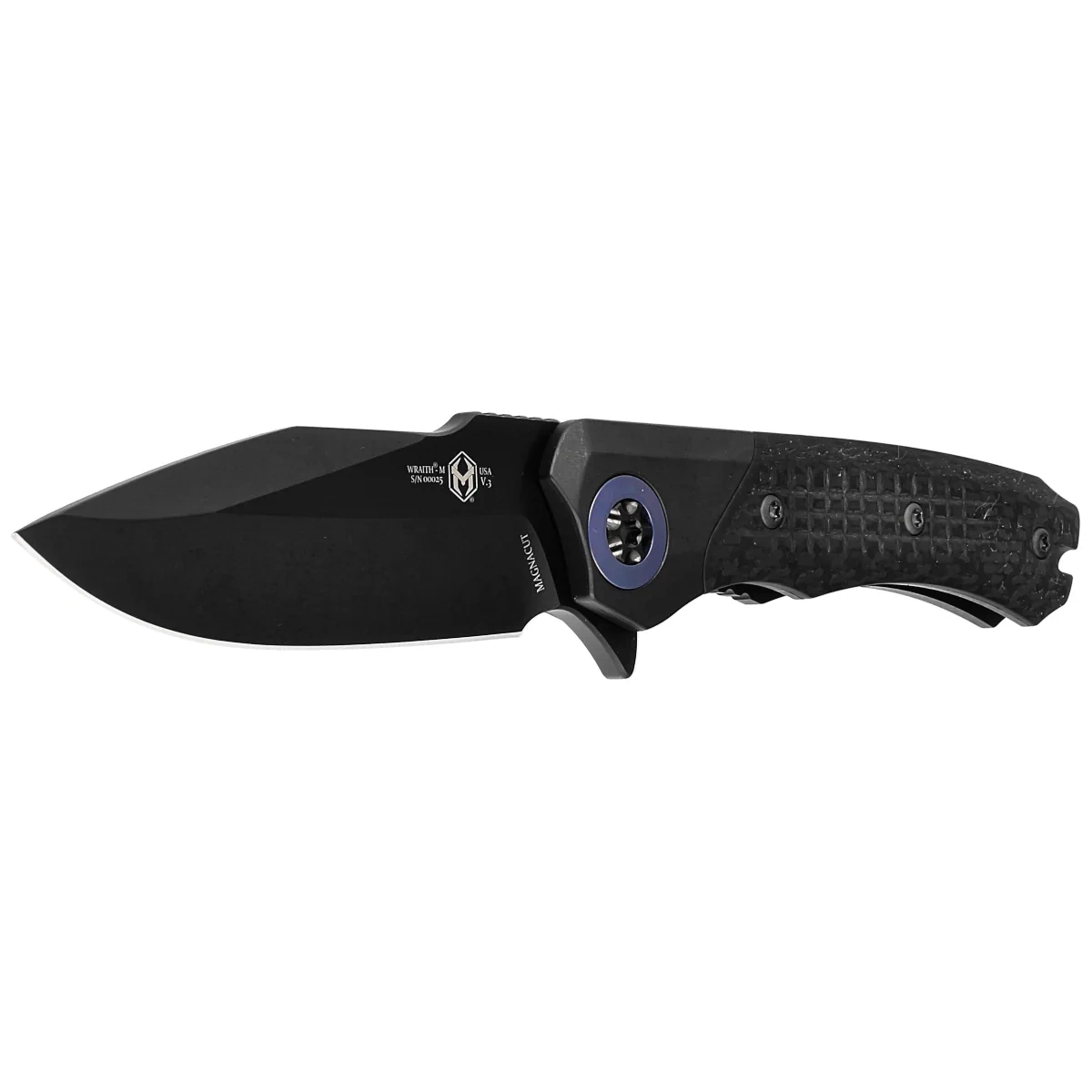 - Wraith M V3 Drop Point Flipper Battleworn DLC Ti / CF, Battleworn DLC Ręcznie szlifowane i ostrzone ostrze. Wykonana z jednego kawałka perfekcyjnie wyfrezowanego tytanu rękojeść integral. Wersja customizowana przez Tony'ego Marfione Jr. z Heretic Knives.