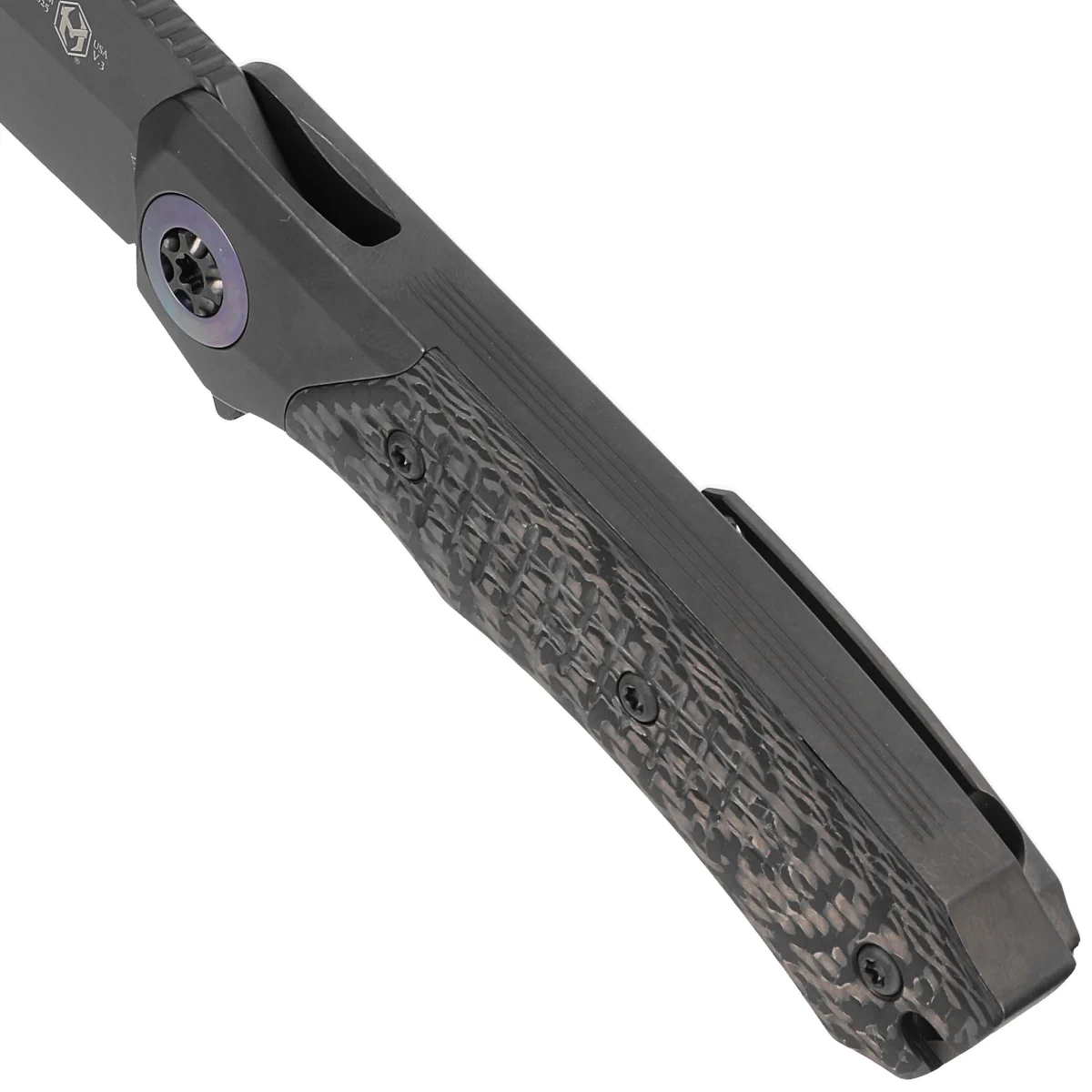 Materiał rękojeści: Integral Black DLC Battle Worn Titanium with Carbon Fiber Scale