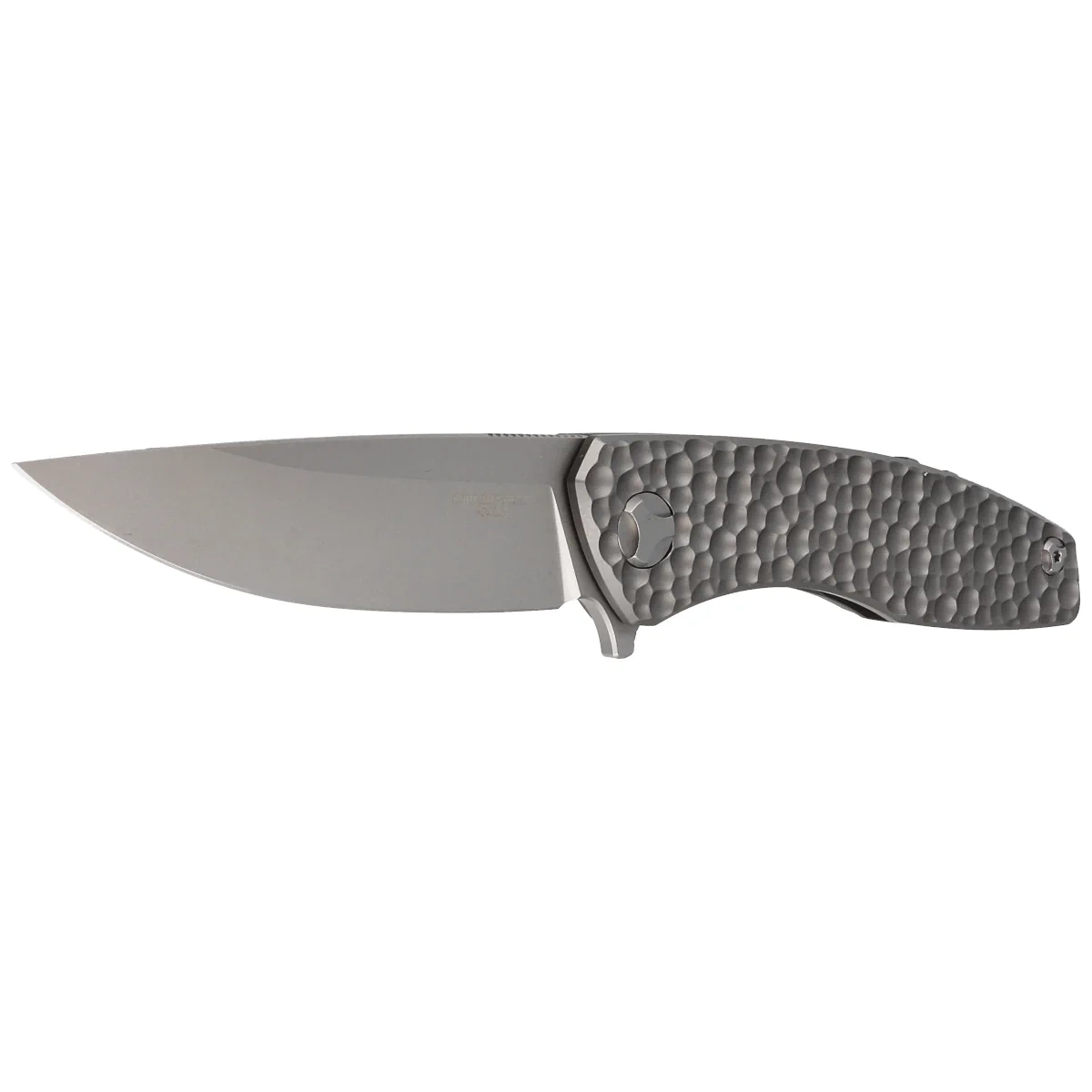 Rękojeść - okładziny z litego tytanu TC4. Fazowane krawędzie okładek eliminują ostre ranty a groszkowana faktura okładzin poprawia pewność uchwytu. Masywny backspacer do którego przymocowano okładziny gwarantuje sztywność i wytrzymałość całej konstrukcji. Prosta, solidna budowa daje pewność wieloletniego użytkowania. Dwupozycyjny (prawa/lewa) klips deep carry pozwala przenosić dyskretnie nóż w kieszeni w pozycji tip-up (czubkiem ostrza do góry).