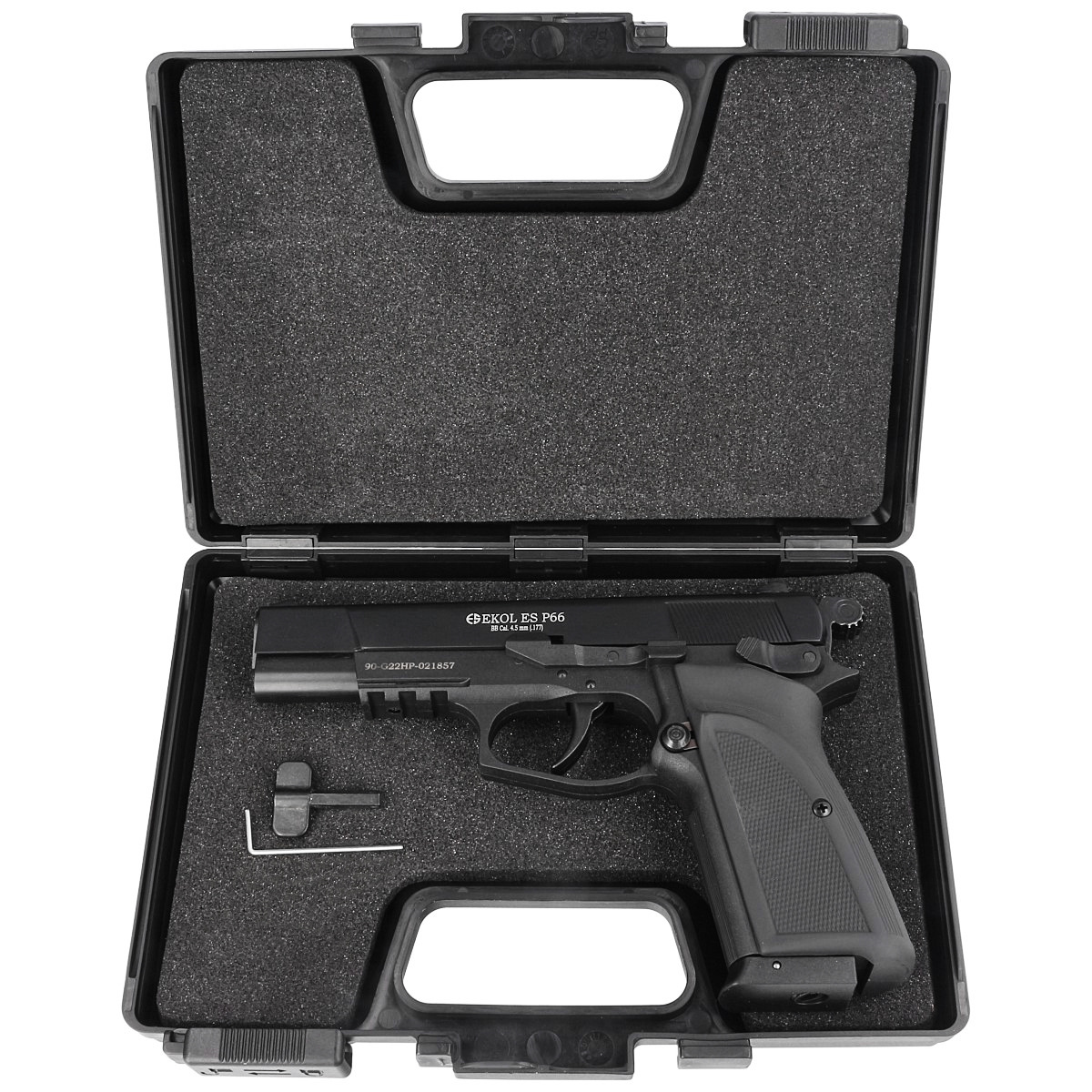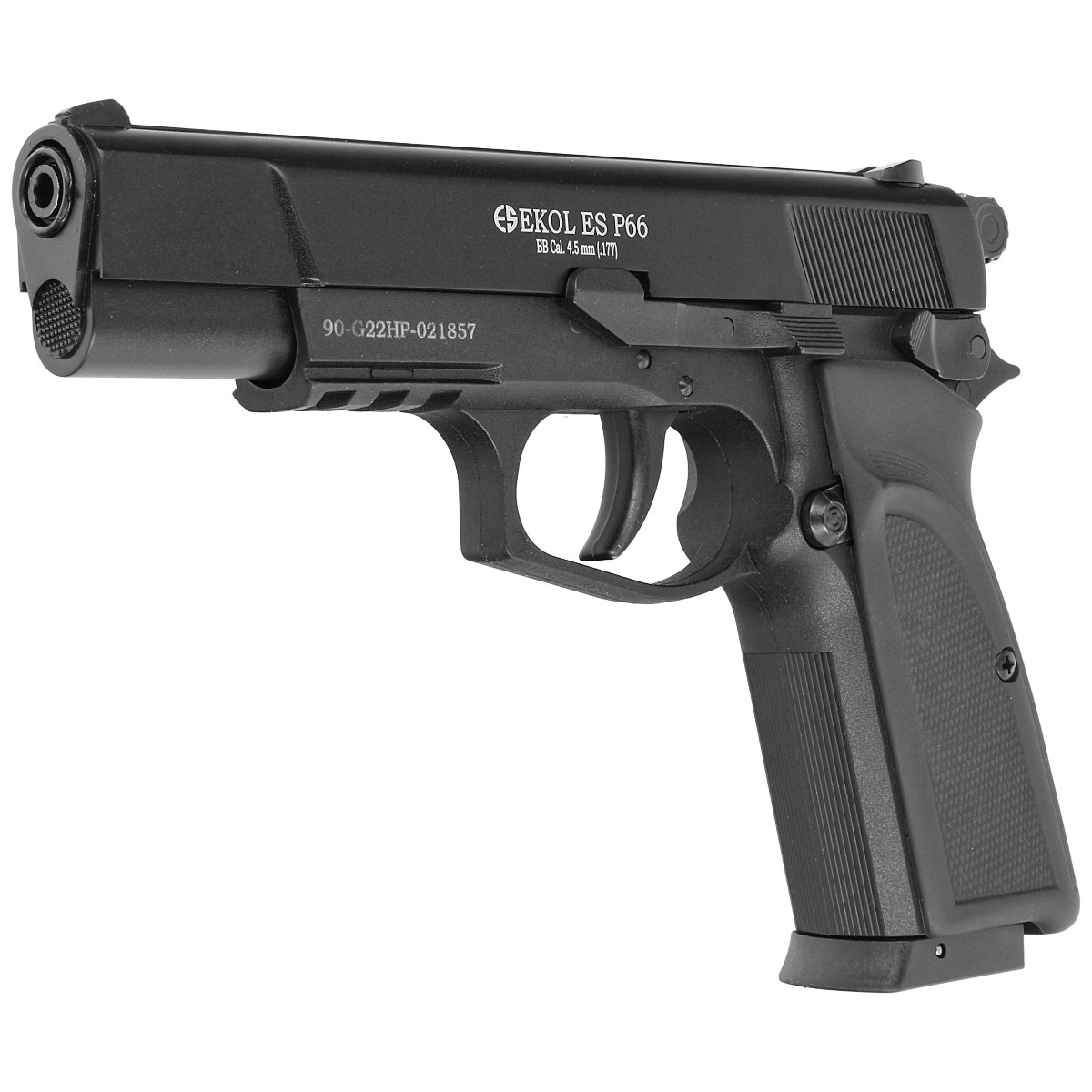 Ekol ES P66 Matte Black ultralekki nowoczesny samopowtarzalny pistolet pneumatyczny, oparty konstrukcyjnie na broni sygnałowej firmy Voltran. Oferuje realistyczny wygląd oraz solidną konstrukcję, zapewniającą trwałość i niezawodność. Zamek (slide), korpus (frame), kurek (hammer), dźwignia decockera (decocker lever) oraz drobne elementy pistoletu zostały wykonane z metalu. Dzięki tak silnym korzeniom, ta jedna z najmocniejszych pistoletowych wiatrówek o prędkości 150 m/s nadaje się do dynamicznego strzelectwa sportowego jak i  treningu taktycznego.