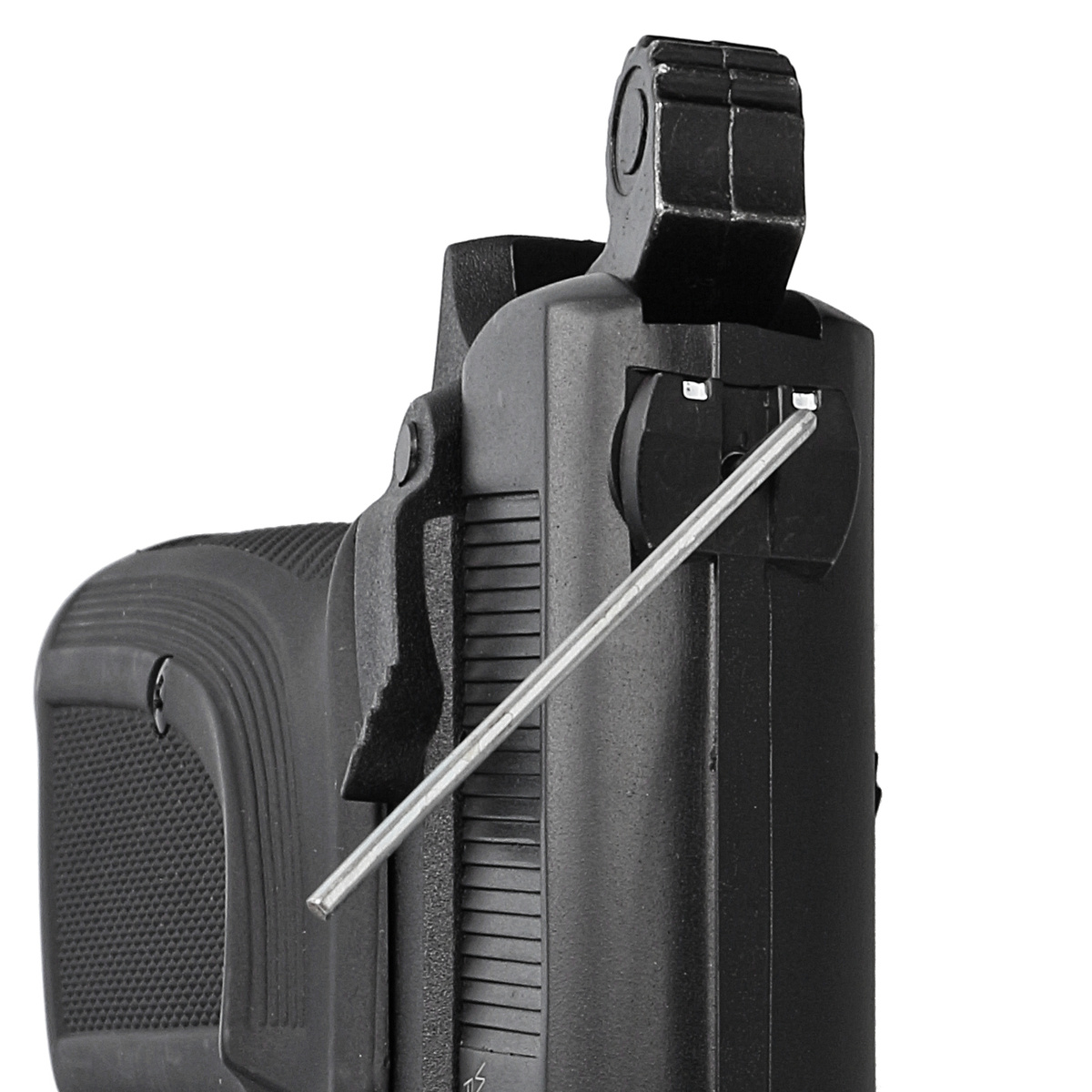 Magazynek - metalowy o pojemności 14 stalowych kulek BBs w kal. 4.5 mm. Waga amunicji rozkłada się równomiernie na całej długości magazynka. Należy używać wyłącznie śrutu stalowego BB.