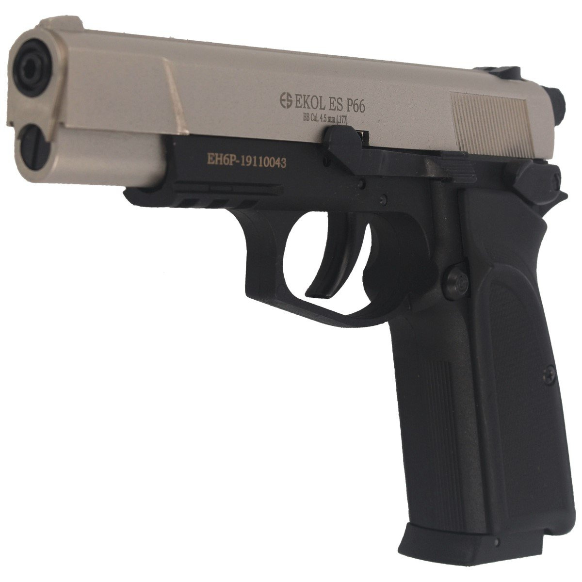 - Ekol ES P66 Satynowy ultralekki, samopowtarzalny pistolet pneumatyczny którego konstrukcję oparto na broni sygnałowej. Dzięki tak silnym korzeniom, ta najmocniejsza wiatrówka 150 m/s nadaje się do dynamicznego strzelania sportowego, treningu taktycznego.