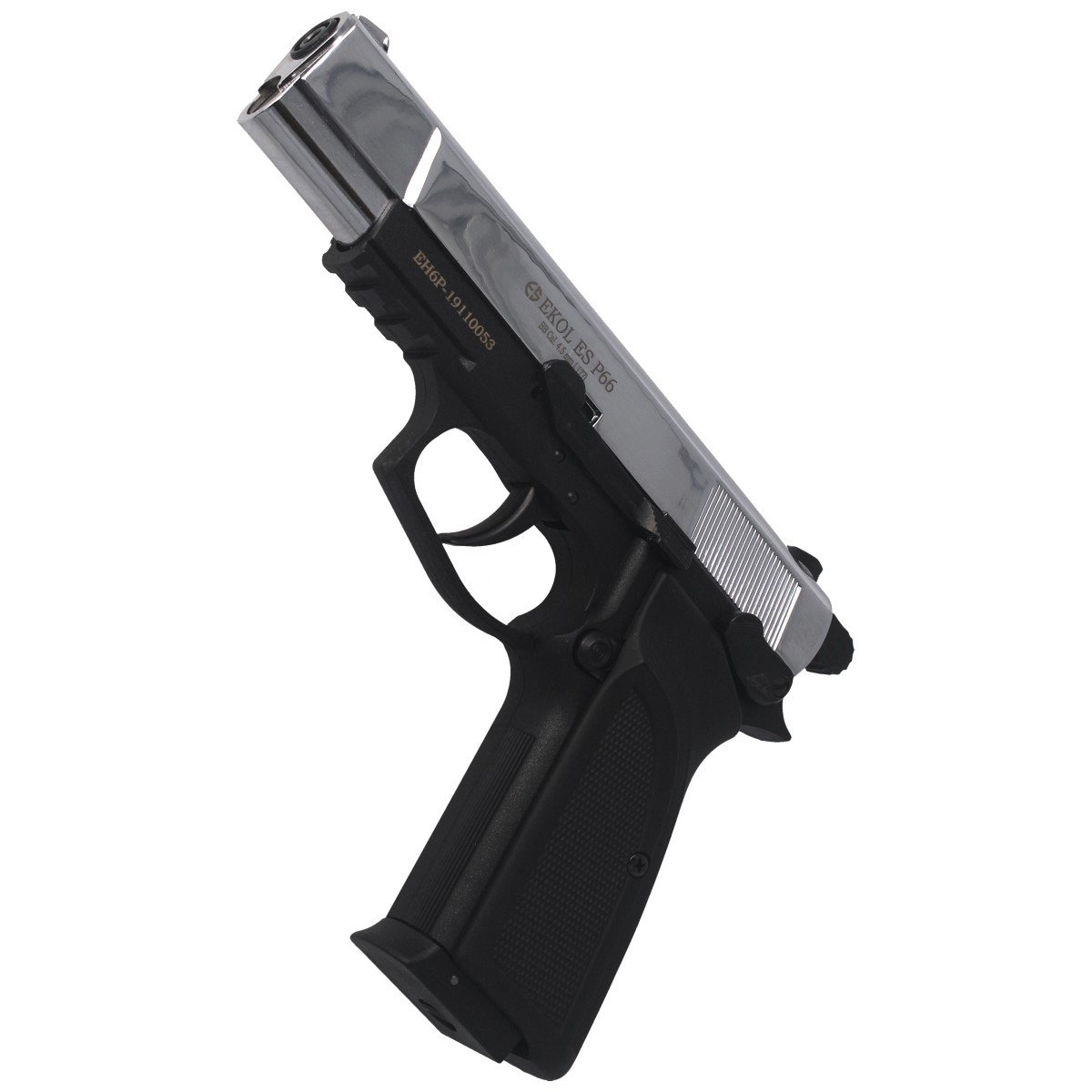 - Ekol ES P66 Chromowany ultralekki, samopowtarzalny pistolet pneumatyczny którego konstrukcję oparto na broni sygnałowej. Dzięki tak silnym korzeniom, ta najmocniejsza wiatrówka 150 m/s nadaje się do dynamicznego strzelania sportowego, treningu taktycznego