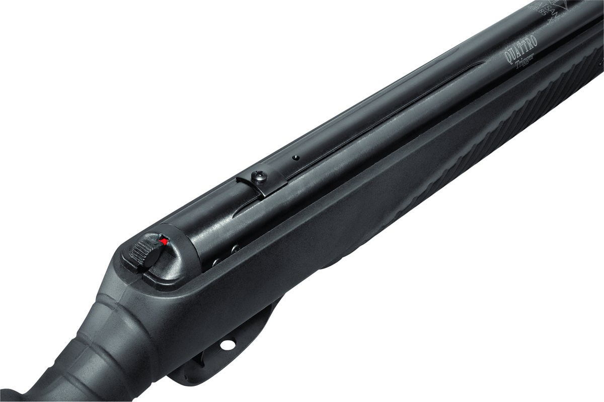 Quattro Trigger - dwustopniowy regulowany mechanizm spustowy (regulacja siły nacisku jak i długości spustu). Umożliwia zindywidualizowanie charakterystyki spustu do wymagań użytkownika poprawiając tym samym celność jak i łatwość oddania strzału.
