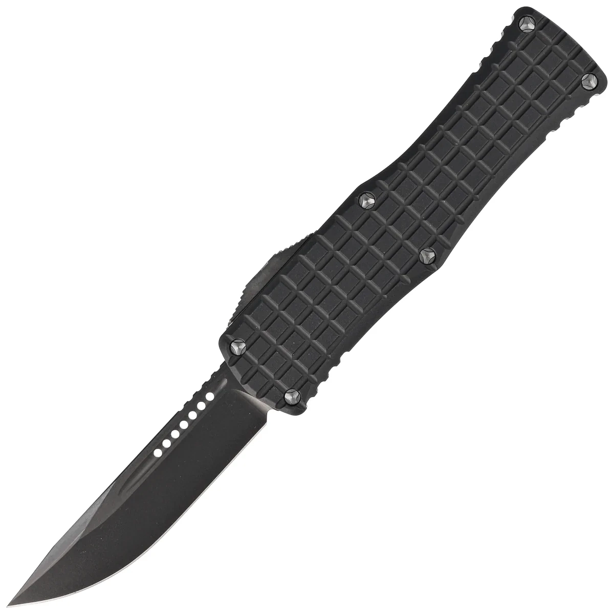 Głownia - szlifowana maszynowo typu S/E (Single Edge Drop Point), pokryta czarną powłoką DLC. Ostrze wyprowadzono wysokim szlifem płaskim (Flat Grind), zapewniającym doskonałe właściwości tnące. Zbrocze z serią otworów wzmacnia klingę. Dzięki temu przy zachowaniu dużej wytrzymałości nóż ma znakomite właściwości przy przebijaniu. Mocny mechanizm wysuwania / chowania klingi za pomocą moletowanego Thumb Slide, schodkowego suwaka pod kciuk wymaga dla bezpieczeństwa przyłożenia konkretnej siły do pokonania oporu sprężyny. Sposób otwierania zapewnia bezproblemowe otwarcie osobom prawo, jak i leworęcznym.