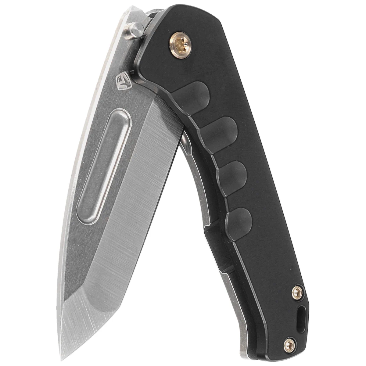 Elitarna cesarska Gwardia Pretoriańska była jednostką, do której wybierano najlepszych spośród legionistów rzymskich, aby służyli jako osobista ochrona cesarza. MKT Praetorian Swift FL Flipper Tumbled Tanto, Black Handle, Bronze HW/Clip smuklejsza wersja flagowca, wciąż jest właśnie takim elitarnym nożem. Jego niesamowita konstrukcja jest ograniczona jedynie wytrzymałością materiałów, z których została wykonana. Grubość ostrza 3.8 mm, solidne aluminiowe/tytanowe okładziny o grubości 3.2 mm oraz pivoty i śruby o grubości 6.35 mm sprawiają, że wyróżnia się on na tle innych noży. Piękna forma i funkcjonalność, bezkonkurencyjna niezawodność, to nóż dla entuzjastów nie uznających kompromisów i wymagających najwyższych standardów!