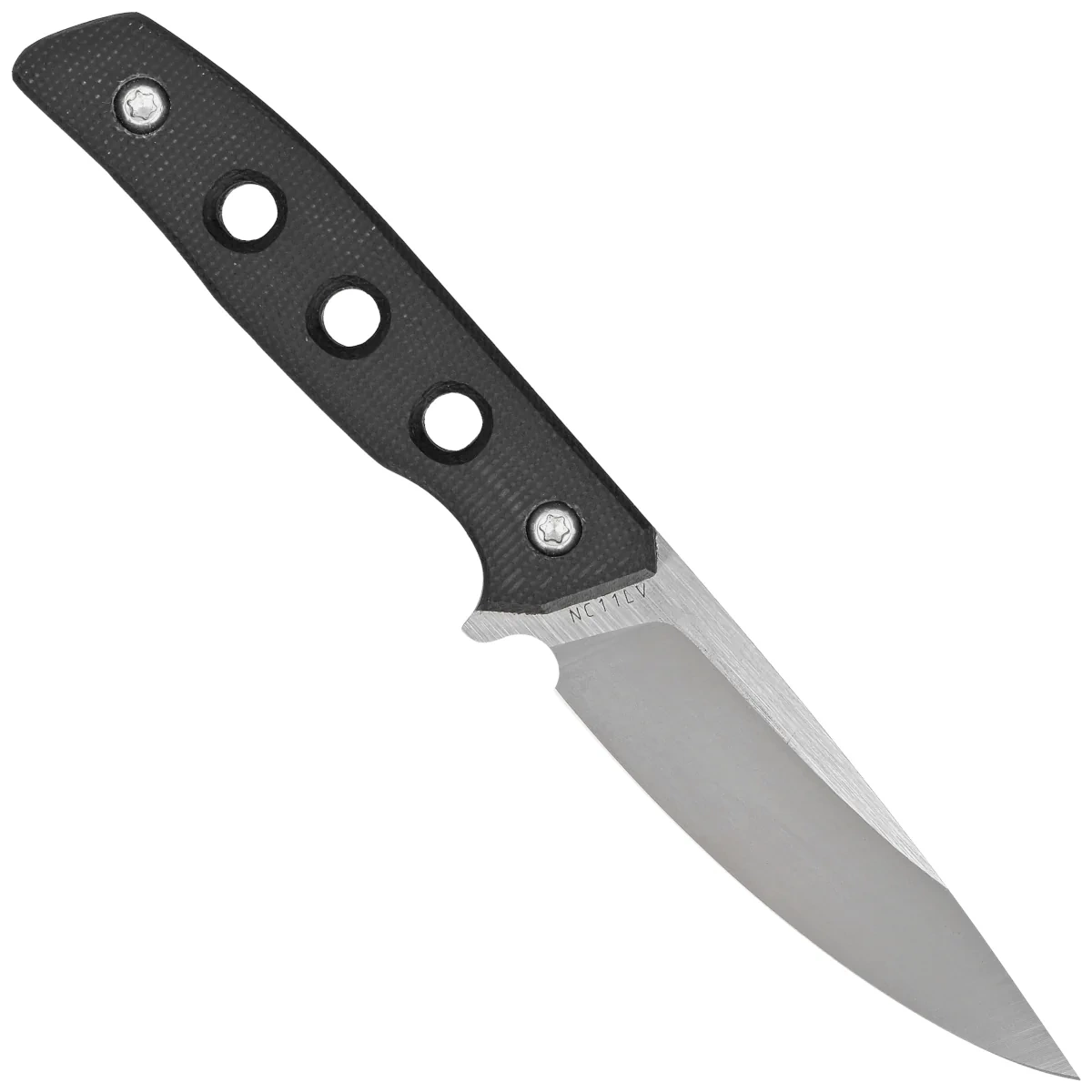 Rękojeść - pokryta wytrzymałymi okładzinami z G10 (włókno szklane prasowana pod ciśnieniem z żywicą syntetyczną) w kolorze czarnym, o lekko chropowatej powierzchni. Zapewniają doskonałą ergonomię oraz pewny uchwyt. Symetryczna konstrukcja rękojeści umożliwia trzymanie noża w obie strony, specjalnie dla użytkowników, ceniących odwrócony chwyt. Seria otworów nie tylko wizualnie nadaje lekkości rękojeści, ale odejmuje również realną wagę noża.