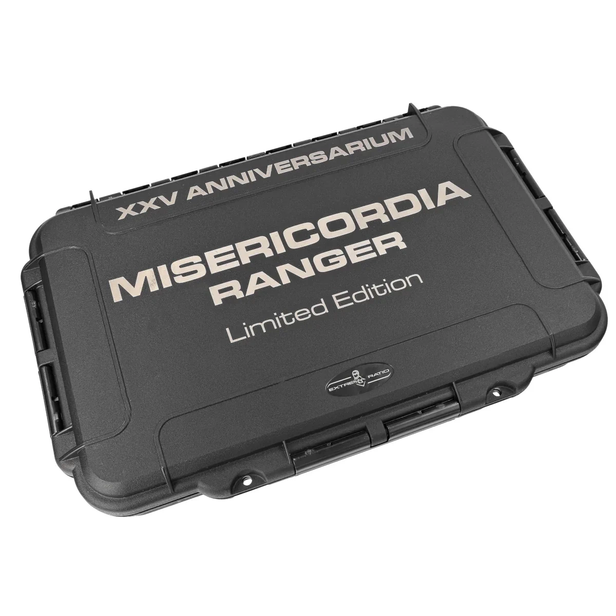Nóż Misericordia Ranger XXV Anniversarium Limited Edition dostarczany jest w wodoszczelnej, pyłoszczelnej i wstrząsoodpornej walizce technicznej z polipropylenu z certyfikatem IP67, z zaworem ciśnieniowym, nylonową oraz kydexową pochwą wraz z dwoma klipsami UltiClip i okolicznościową monetą.
