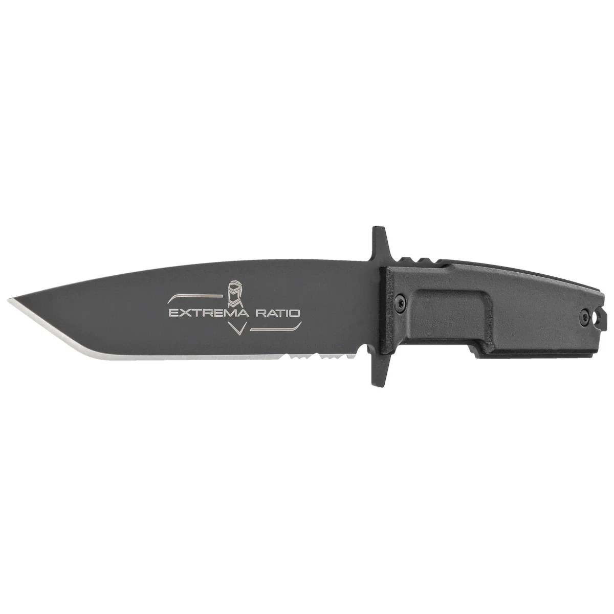 COL MOSCHIN Paper Knife jest dekoracyjnym akcesorium do biura czy gabinetu domowego, ale ma również wszystkie cechy taktyczne typowe dla DNA firmy Extrema Ratio. Rękojeść z tworzywa, ostrze ze stali nierdzewnej, częściowo ząbkowane, które zapożycza swój kształt od starszego brata. Podobnie jak w dużym modelu, ostrze zostało pokryte nierefleksyjną matową powłoką MIL-C-13924 BURNISHING.