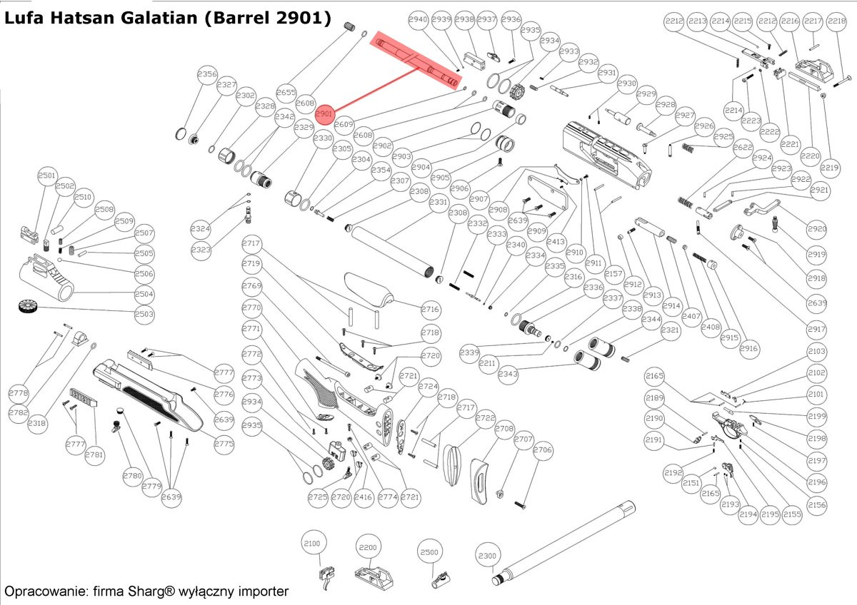 - 2901 - (serwis) precyzyjna gwintowana lufa o długości 23" (585 mm) firmy Hatsan Arms. Przeznaczona do mocnych wiatrówek PCP Predator, Hercules oraz Galatian. Lufy: 2901-1 kaliber .177 (4.5 mm), 2901-2 kaliber .22 (5.5 mm), 2901-3 kaliber .25 (6.35mm).