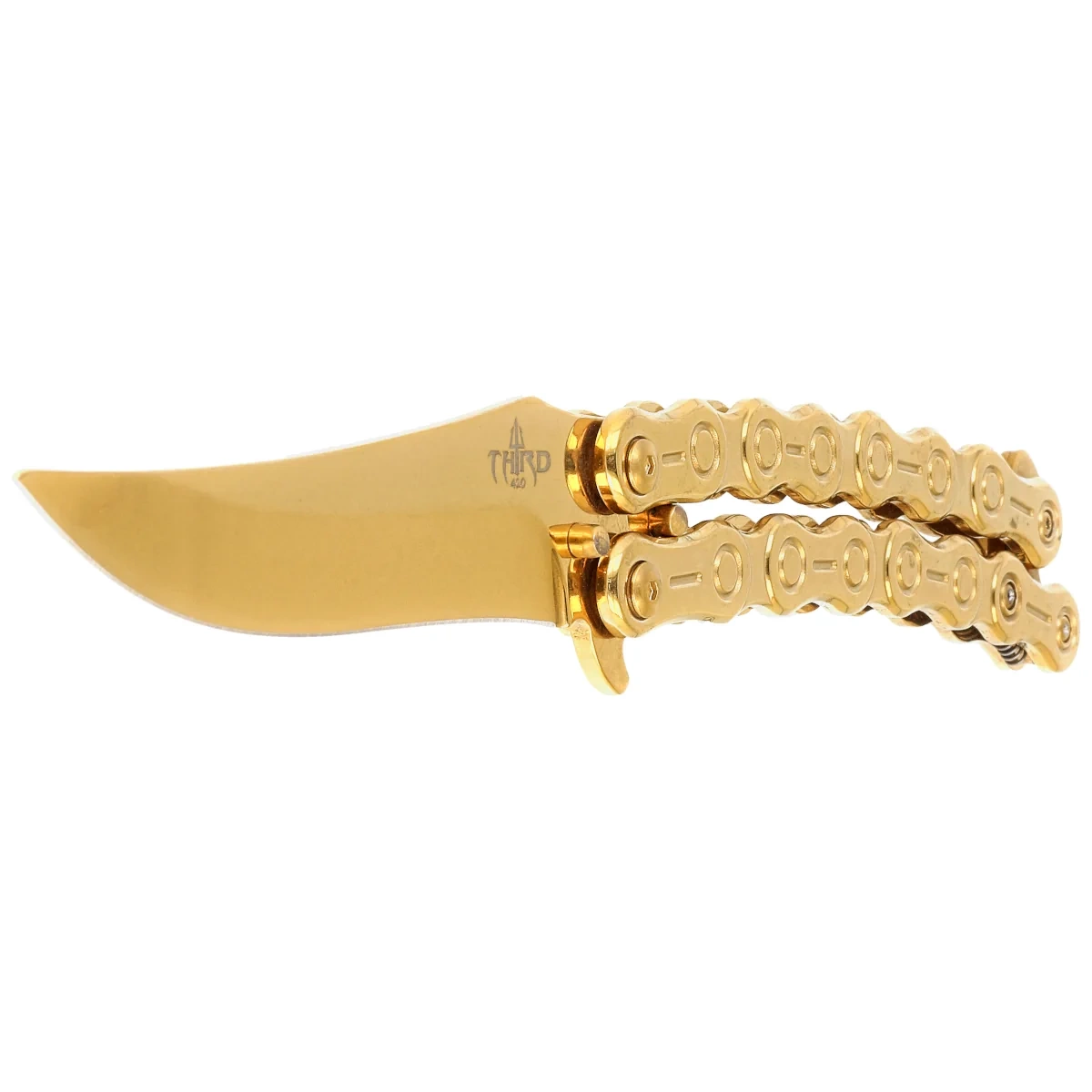 Nazwa produktu: Third Butterfly Knife Chain Design Gold Titanium Stainless Steel, Gold Titanium