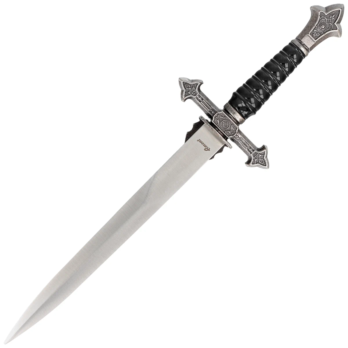 Doskonała replika pięknego, średniowiecznego sztyletu. Propozycja dla entuzjastów militariów i broni europejskiej, ale nie tylko. Idealnie sprawdzi się jako oryginalny prezent na urodziny lub rocznicę, dla szefa lub na dzień ojca. Może być używana jako dekoracja wystroju wnętrza. Ten nóż ma charakter historyczny, kolekcjonerski, edukacyjny i może być wykorzystany do filmu lub teatru, wszelkiego rodzaju oficjalnych i nieoficjalnych inscenizacji organizowanych przez grupy odtwarzające historyczne bitwy lub miłośników cosplayu odtwarzających klimaty fantasy. Każdy nóż jest wykonany ręcznie przez hiszpańskich rzemieślników co czyni go wyjątkowym! Dodaj nowy przedmiot do swojej kolekcji!