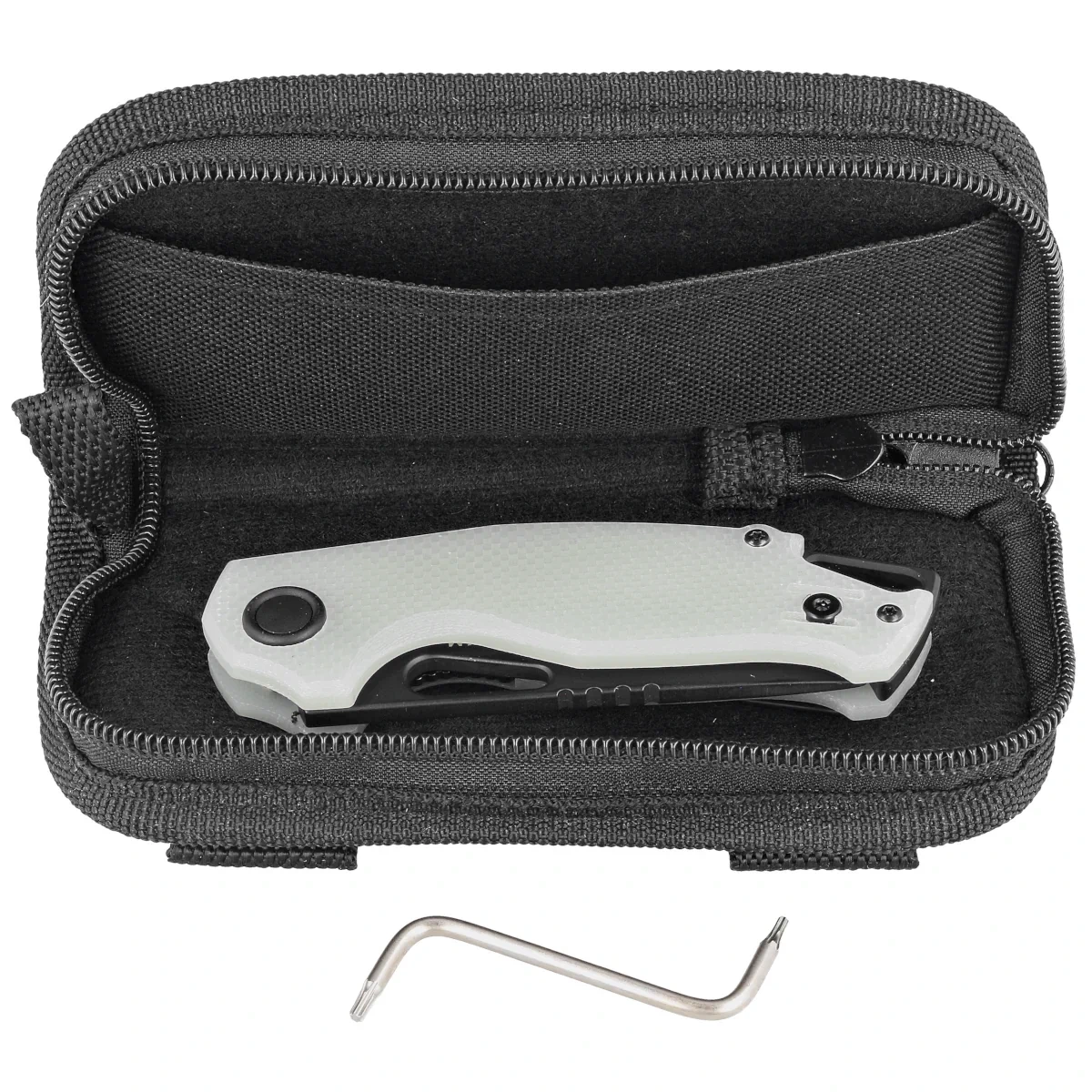 Futerał - nóż zapakowano w zapinane zamkiem miękkie nylonowe etui z logo marki. Służy do bezpiecznego przechowywania i transportowania foldera.
