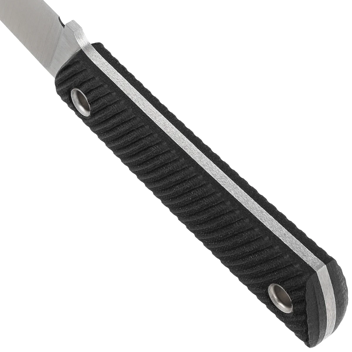 Rękojeść - pokryta wytrzymałymi okładzinami z G10 (włókno szklane prasowana pod ciśnieniem z żywicą syntetyczną) w kolorze czarnym, o charakterystycznej, pręgowanej fakturze. Zapewniają doskonałą ergonomię oraz pewny uchwyt. Symetryczna konstrukcja rękojeści umożliwia trzymanie noża w obie strony, specjalnie dla użytkowników, ceniących odwrócony chwyt.