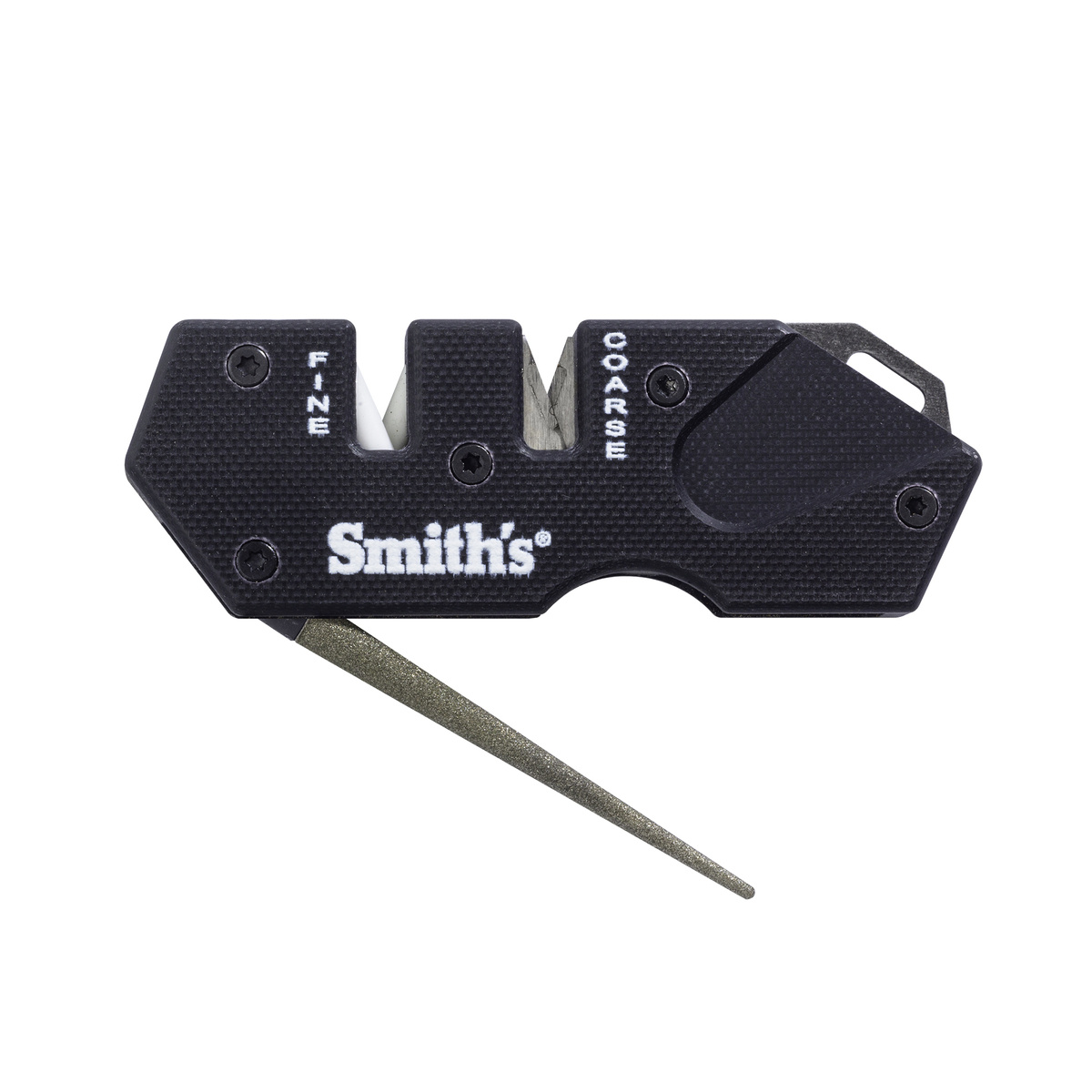 PP1-Mini Tactical Black, wielofunkcyjna kieszonkowa ostrzarka Pocket Pal Knife Sharpener amerykańskiej firmy Smith's. Pozwala łatwo i sprawnie naostrzyć nóż kuchenny, myśliwski, wędkarski, EDC, drobne narzędzia oraz haczyki wędkarskie.