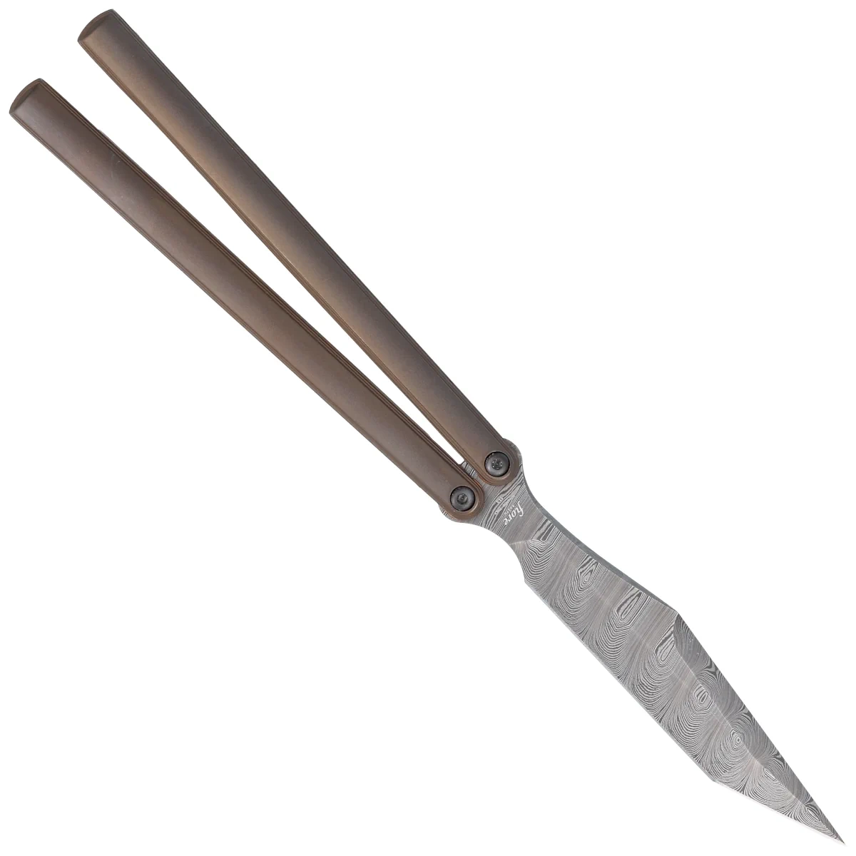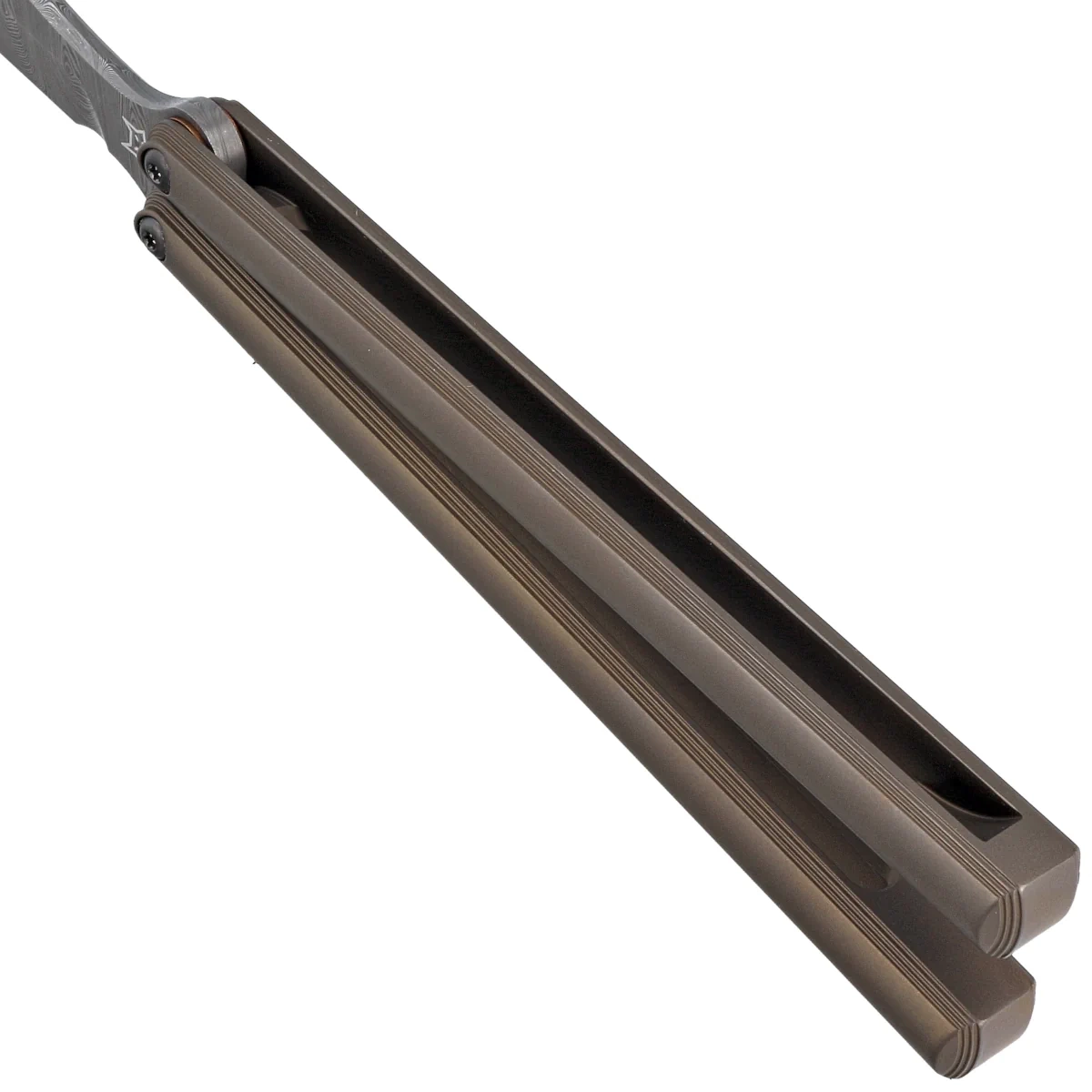 - PHI Butterfly Bronze Titanium, Damasteel Super Dense Twist, projekt specjalisty od balisongów, Vincenzo Fiore dla firmy Fox. Doskonała forma sprzyjająca robieniu najtrudniejszych tricków. Absolutnie topowe materiały, anodyzowany tytan, stal Damasteel®!