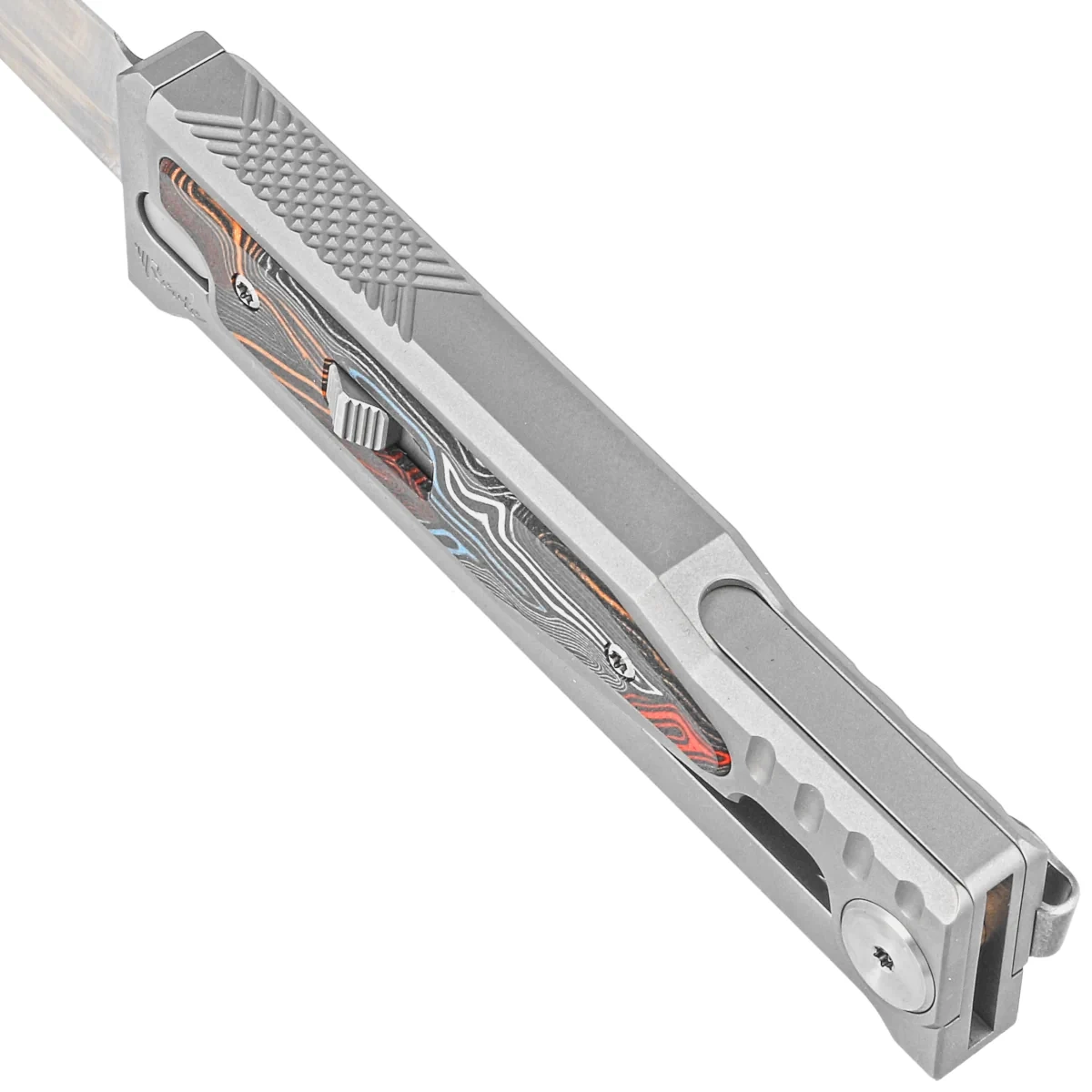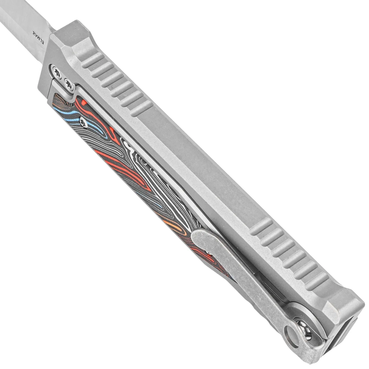 Nóż grawitacyjny Reate EXO-M Gravity D/E Bead Blasted Titanium/Damascus MultiColor G10, Satin Elmax