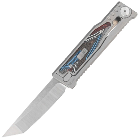 - EXO-M Gravity Tanto Bead Blasted Titanium / Damascus Multi Color G10, Satin. Model wyposażony w klingę wysuwaną z przodu, aktywowaną siłą grawitacji. Najwyższej klasy materiały, intuicyjny mechanizm otwierania, popis inżynierów w dziedzinie projektowania