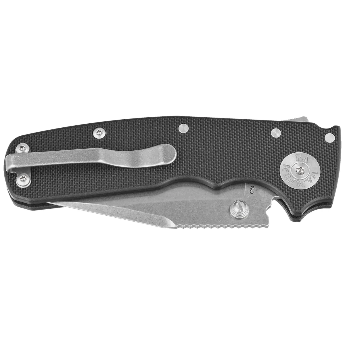 Rękojeść - okładziny z G10, praktycznie niezniszczalnego tworzywa niewrażliwego na warunki atmosferyczne, odpornego na chemikalia i uszkodzenia mechaniczne. Fazowane krawędzie okładek eliminują ostre ranty a charakterystyczne teksturowanie powierzchni poprawia pewność uchwytu. Dwupozycyjny (prawa/lewa) klips umożliwia przenoszenie noża w pozycji tip-up, czubkiem ostrza ku górze.