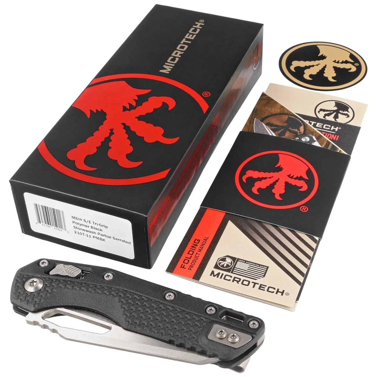 Nóż składany Microtech MSI S/E Ram-Lok Black Tri-Grip Polymer, Stonewashed P/S M390MK by Tony Marfione (210T-11PMBK)