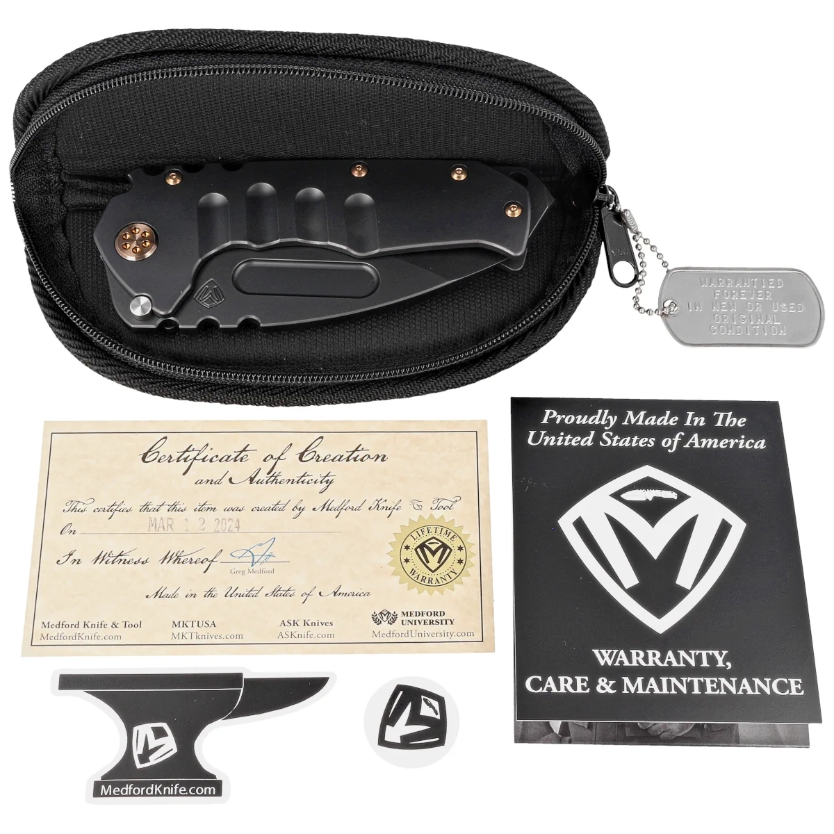 Nóż składany Medford Praetorian T DP Black DLC Titanium, Bronze HW/Clip, Black DLC S45VN by Greg Medford (MK0124PD-30PV-T1C1-BP)