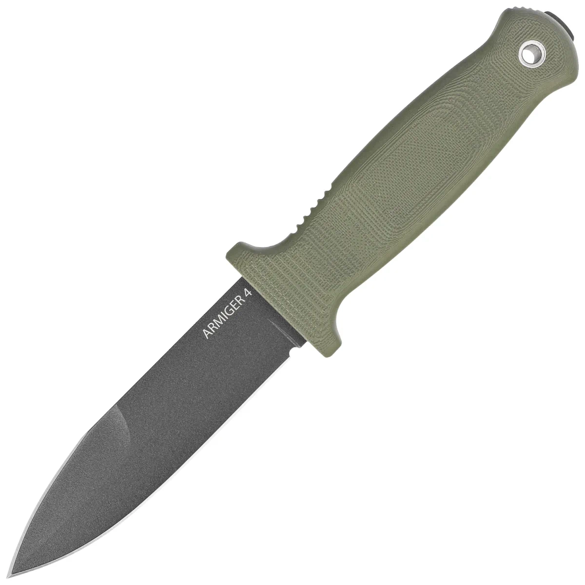 • Armiger 4 Spear Point OD Green Thermal Plastic Rubber, Black Powder Coated, kompaktowy nóż typu boot knife. Budowa full tang, wygodna rękojeść zapewniająca pewny chwyt. Pochwa z kydexu. Projekt długoletniego projektanta firmy Cold Steel, Andrew Demko.