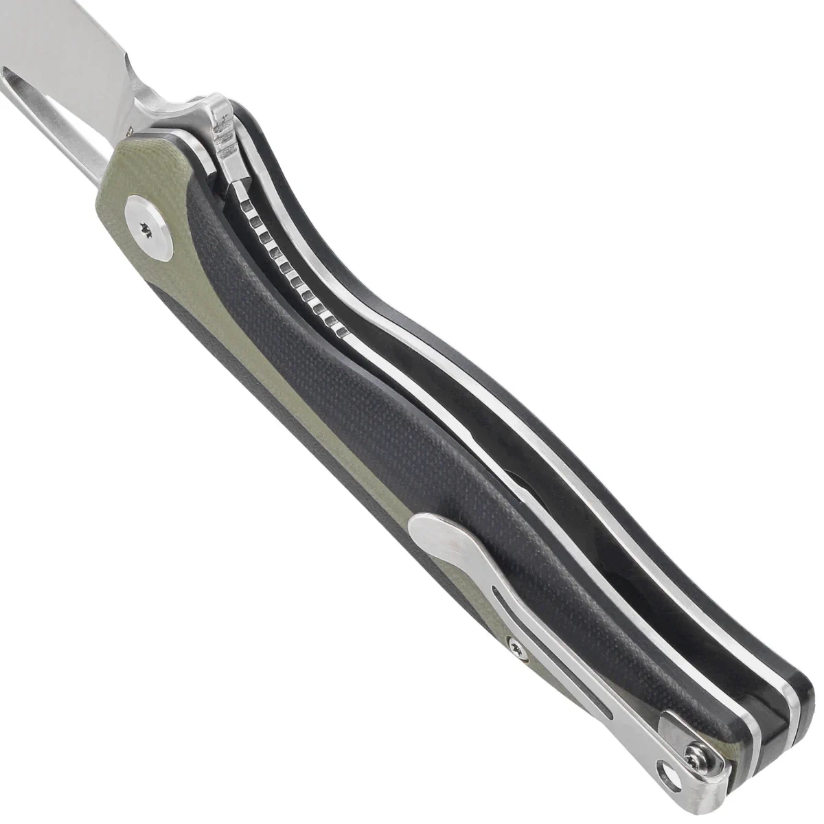 - Komodo Black/Green G10, Stonewashed/Satin, podręczny folder EDC z użytkowym profilem klingi. Wykonany z charakterystyczną dla firmy Bestech starannością. Na rękojeści okładziny z G10, głownia ze sprawdzonej stali narzędziowej D2, w znakomitej cenie.