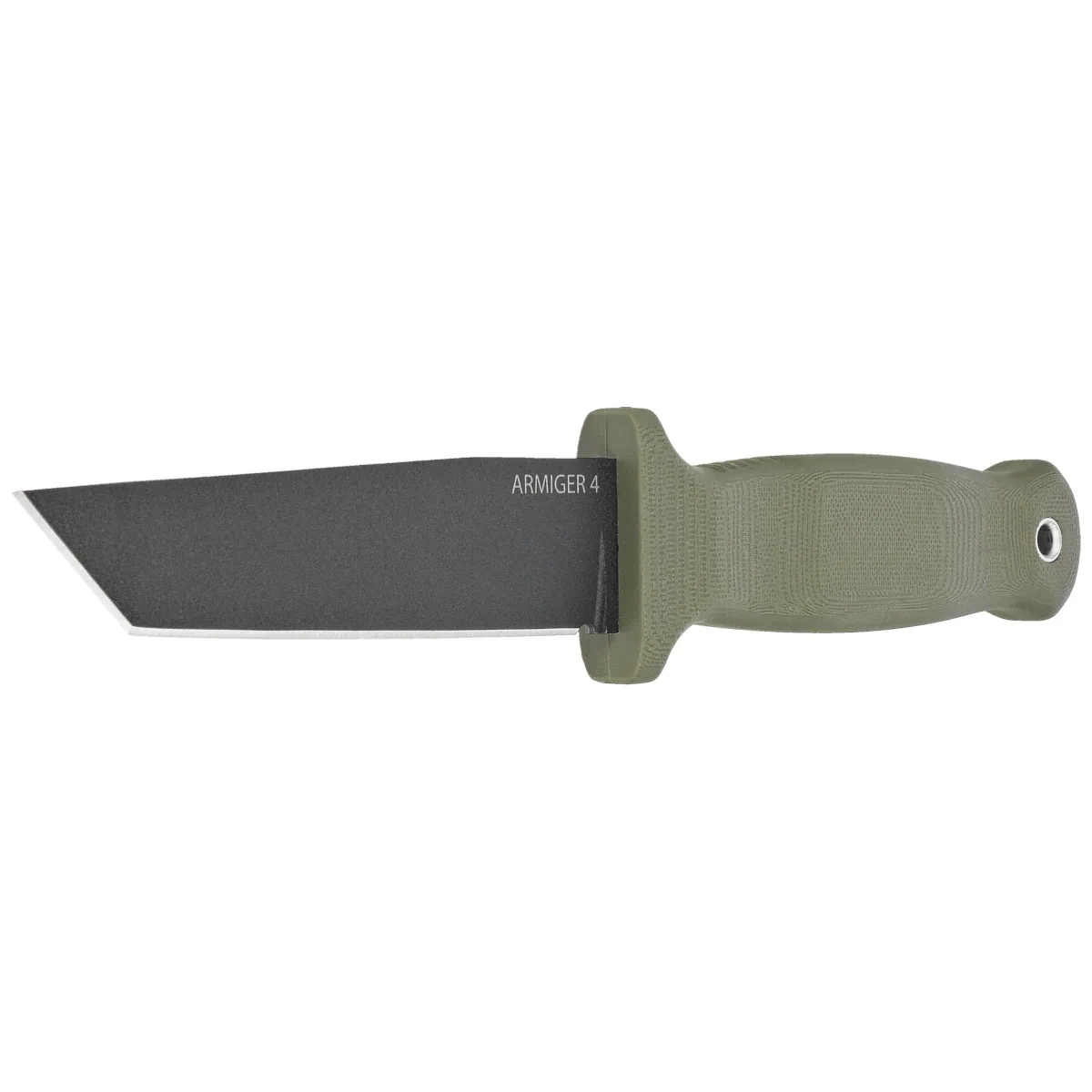- Armiger 4 Tanto OD Green Thermal Plastic Rubber, Black Powder Coated, kompaktowy nóż typu boot knife. Budowa full tang, wygodna rękojeść zapewniająca pewny chwyt. Pochwa z kydexu. Projekt długoletniego projektanta firmy Cold Steel, Andrew Demko.