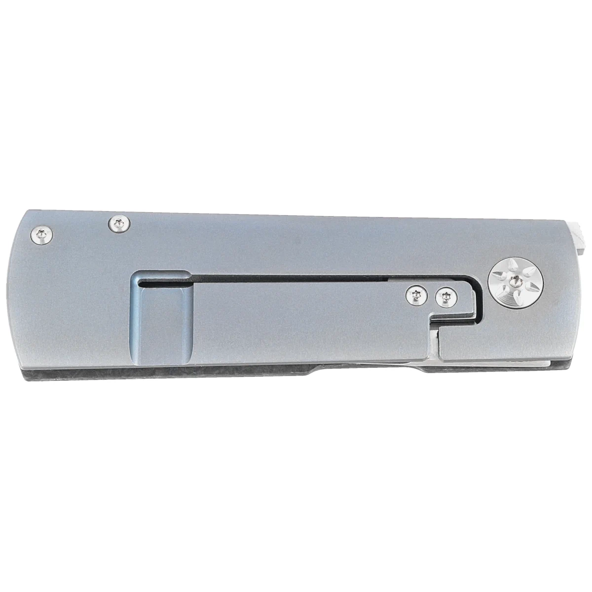 Rękojeść - okładzina po stronie prezentacyjnej z kompozytu Fat Carbon, materiału o wyjątkowej wytrzymałości i estetyce. Strona blokady z tytanu, okładziny mocowane do kunsztownego backspacera. Ozdobny pivot pięknie kontrastuje z kolorem okładzin. Prosta linia okładzin pozwala na dopasowanie rękojeści niemal do każdej dłoni, niezależnie od jej rozmiaru czy preferencji chwytu.