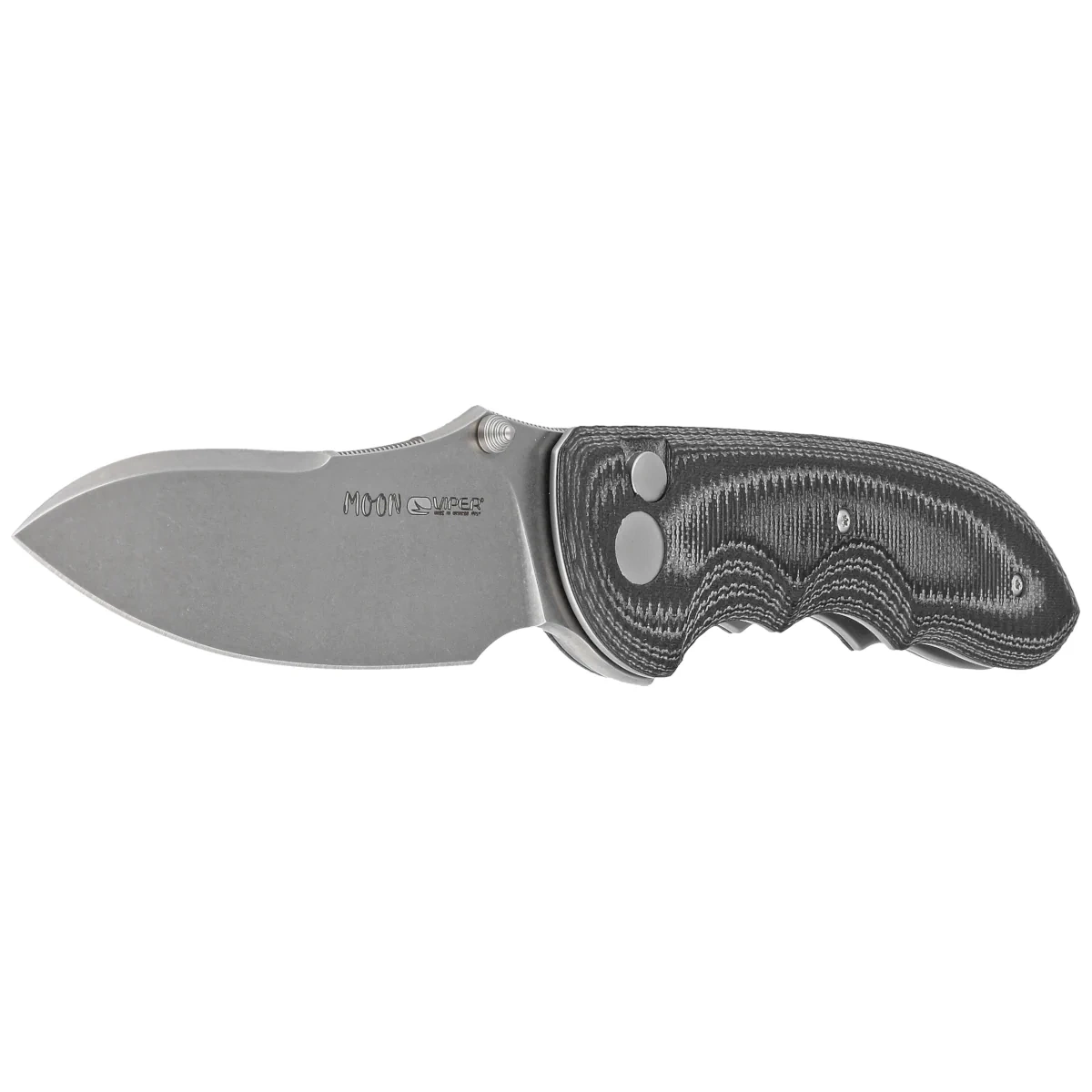 Moon Black Suretouch, Stonewashed, nóż składany projektu Fabrizio Silvestrellego. Intuicyjna blokada button lock umożliwiająca grawitacyjne otwieranie noża i ergonomiczna rękojeść wykonana z prawie niezniszczalnego kompozytu G10. Mocne narzędzie z topowych materiałów, w tym uznawanej za najlepszą stal na noże - MagnaCut!