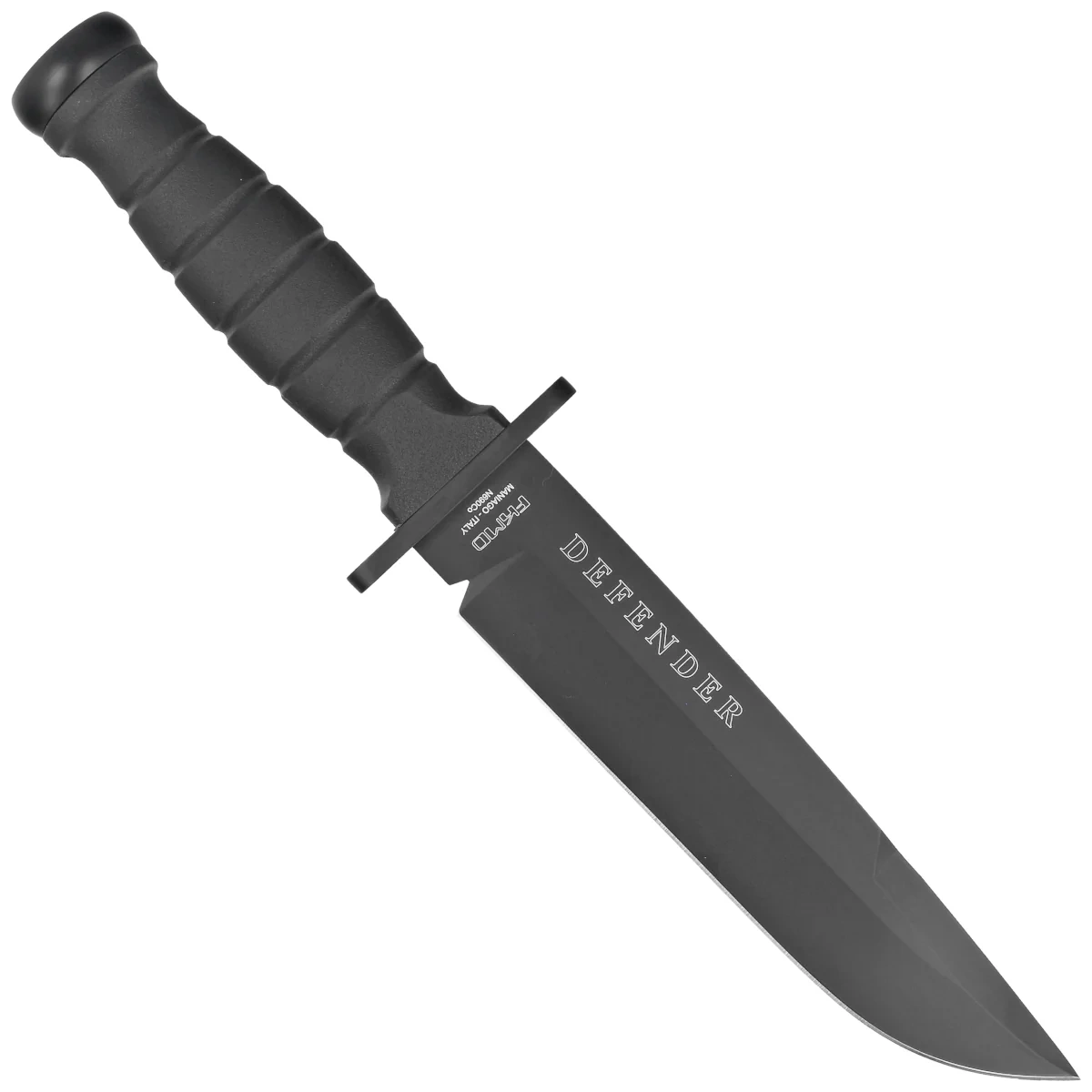 - Defender Black FRN, Black Top Shield, duży, mocny nóż, dla którego inspiracją był najbardziej rozpowszechniony kształt wojskowego noża szturmowego. Solidna klinga ze stali Böhler N690Co, wygodna, pełnowymiarowa rękojeść z kompozytu FRN.