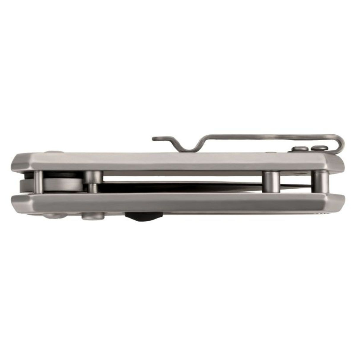 Rękojeść - wykonana ze stali nierdzewnej, fazowane krawędzie okładek eliminują ostre krawędzie dla wygody, a prosty kształt ułatwia dopasowanie do każdej ręki. Otwarta konstrukcja tzw. open-backed mocowana stalowymi tulejami dystansowymi redukuję wagę oraz ułatwia czyszczenie. Na lewej okładzinie przycisk uruchamiający mechanizm otwierania, dla bezpieczeństwa schowany w lekkim zagłębieniu aby uniknąć przypadkowego otwarcia. Za przyciskiem suwak blokady, dodatkowo zabezpieczając przed przypadkowym otwarciem. Jednopozycyjny (prawa) klips deep carry pozwala przenosić dyskretnie nóż w kieszeni w pozycji tip-up (czubkiem ostrza do góry).