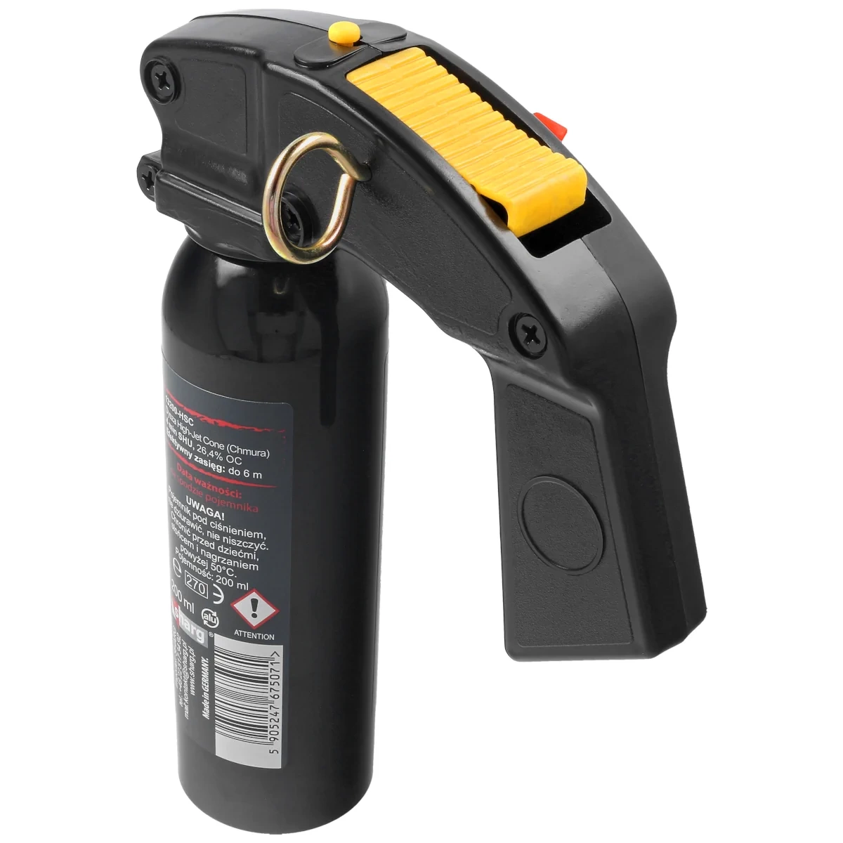 Grizzly Gel 200 ml to najmocniejszy miotacz gazu pieprzowego dostępny na rynku! Gaz o silnie wzmocnionej formule 4 mln SHU, 26.4% OC (Oleoresin Capsicum), 3.96% MC (Major Capsaicinoids) w poręcznym pojemniku z wygodną głowicą Pistol Grip.