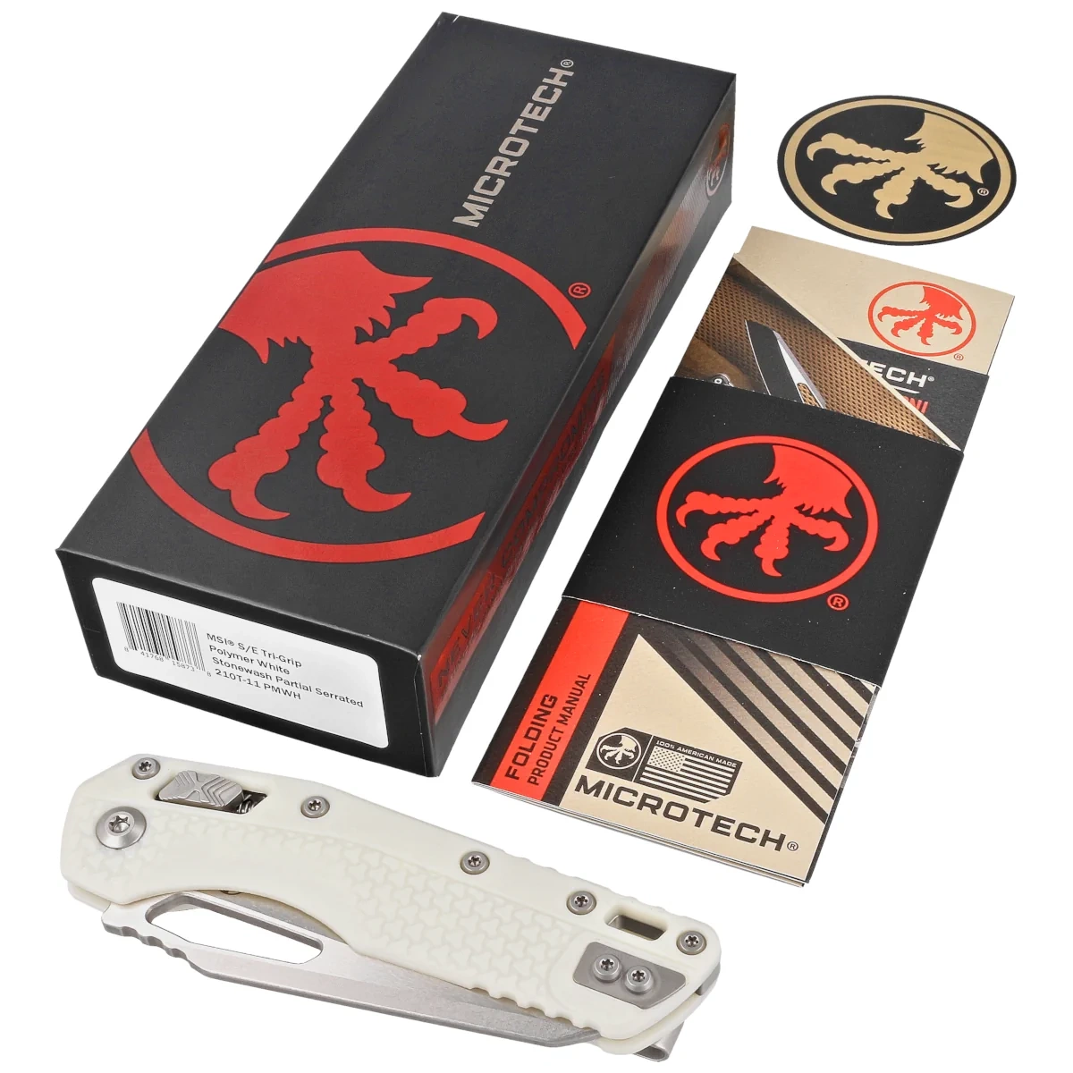 Nóż składany Microtech MSI S/E White Tri-Grip Polymer, Stonewashed M390MK by Tony Marfione (210T-11PMWH)