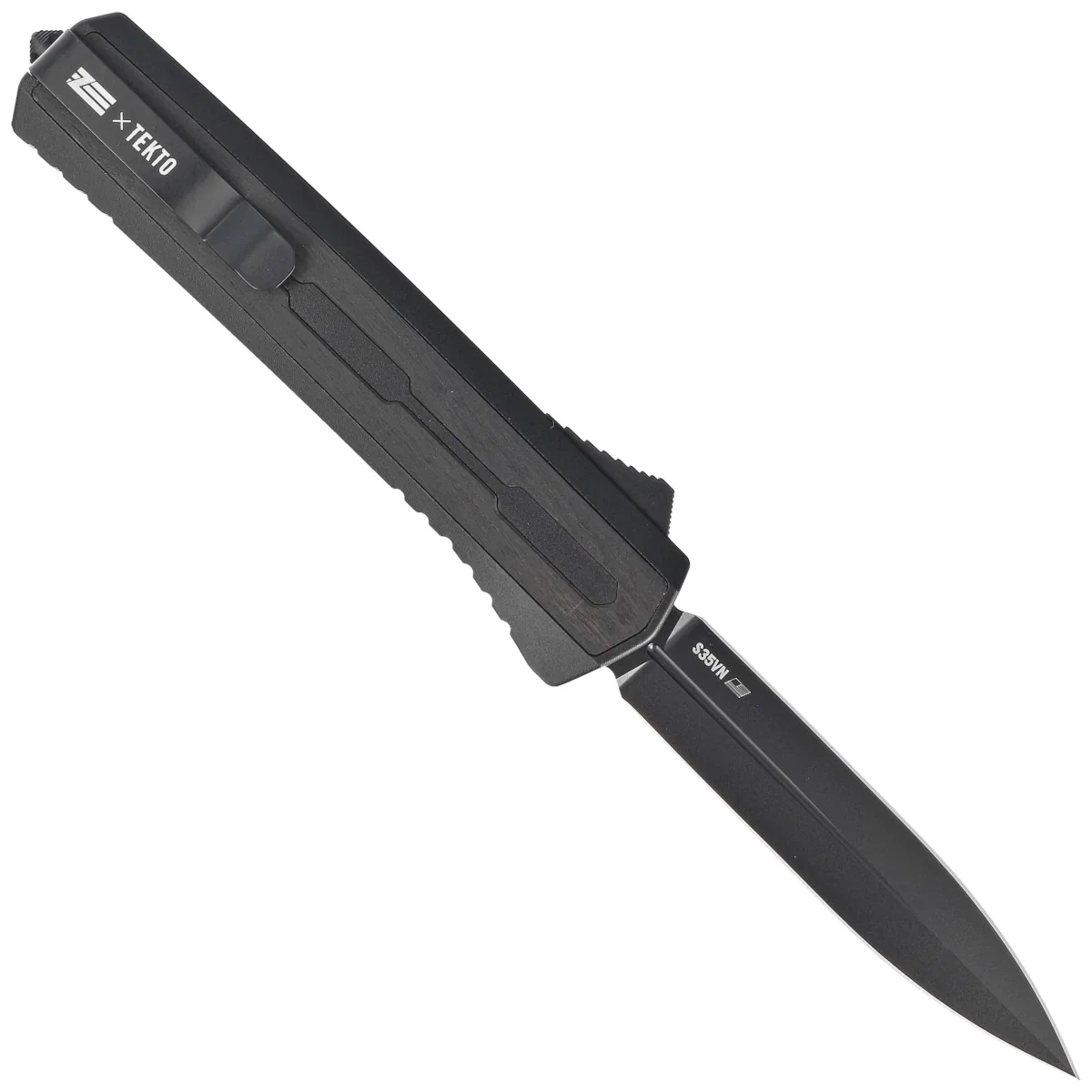 A7 Zastava D/E Black Aluminium/Tactical Black Wood, Black to zaawansowany nóż automatyczny OTF firmy Tekto, zaprojektowany we współpracy z inżynierami fabryki Zastava Arms. Rękojeść wykonana z wysokiej jakości aluminium 6061-T6, precyzyjnie wyprofilowana, zapewnia pewny chwyt i doskonałą kontrolę nad narzędziem, nawet w najbardziej wymagających warunkach. Wkładki z drewna są wykonane w kolorach identycznych z obsadą i łożem legendarnych karabinów AK M70 produkowanych w zakładach Zastavy. Ostrze ze stali S35VN, wysoko hartowane (58-61 HRC), gwarantuje niezrównaną wydajność cięcia oraz długotrwałe trzymanie ostrości. Kompaktowy i lekki, ważący zaledwie 105 gramów, A7 Zastava jest niemal niewidoczny w kieszeni, co czyni go idealnym wyborem dla osób potrzebujących dyskretnego, ale jednocześnie gotowego do natychmiastowego użycia narzędzia. Mechanizm automatycznego wysuwania ostrza, aktywowany za pomocą ergonomicznie umieszczonego przycisku, zapewnia błyskawiczne i niezawodne działanie. A7 Zastava to nie tylko narzędzie, ale również wyraz najwyższej jakości wykonania i innowacyjnego designu, który spełni oczekiwania nawet najbardziej wymagających użytkowników. Jego taktyczny charakter, połączony z eleganckim wyglądem, sprawia, że jest to niezastąpiony element wyposażenia każdego profesjonalisty.