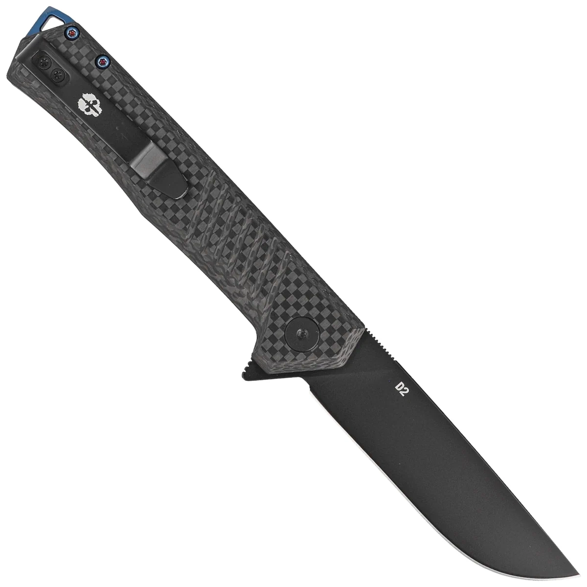 - F1 Alpha Black Carbon Fiber, Blue HW, Black uniwersalny nóż składany firmy Tekto Knives. Utylitarna głownia ze stali narzędziowej D2, solidne okładziny z kompozytu Carbon Fiber. Sprawdzi się na polu walki, w lesie, na kampingu czy w warsztacie.